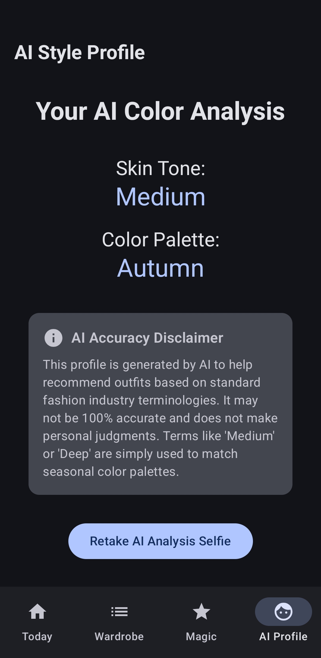 - User palette analysis – a selfie is analyzed for skin tone and seasonal color palette.