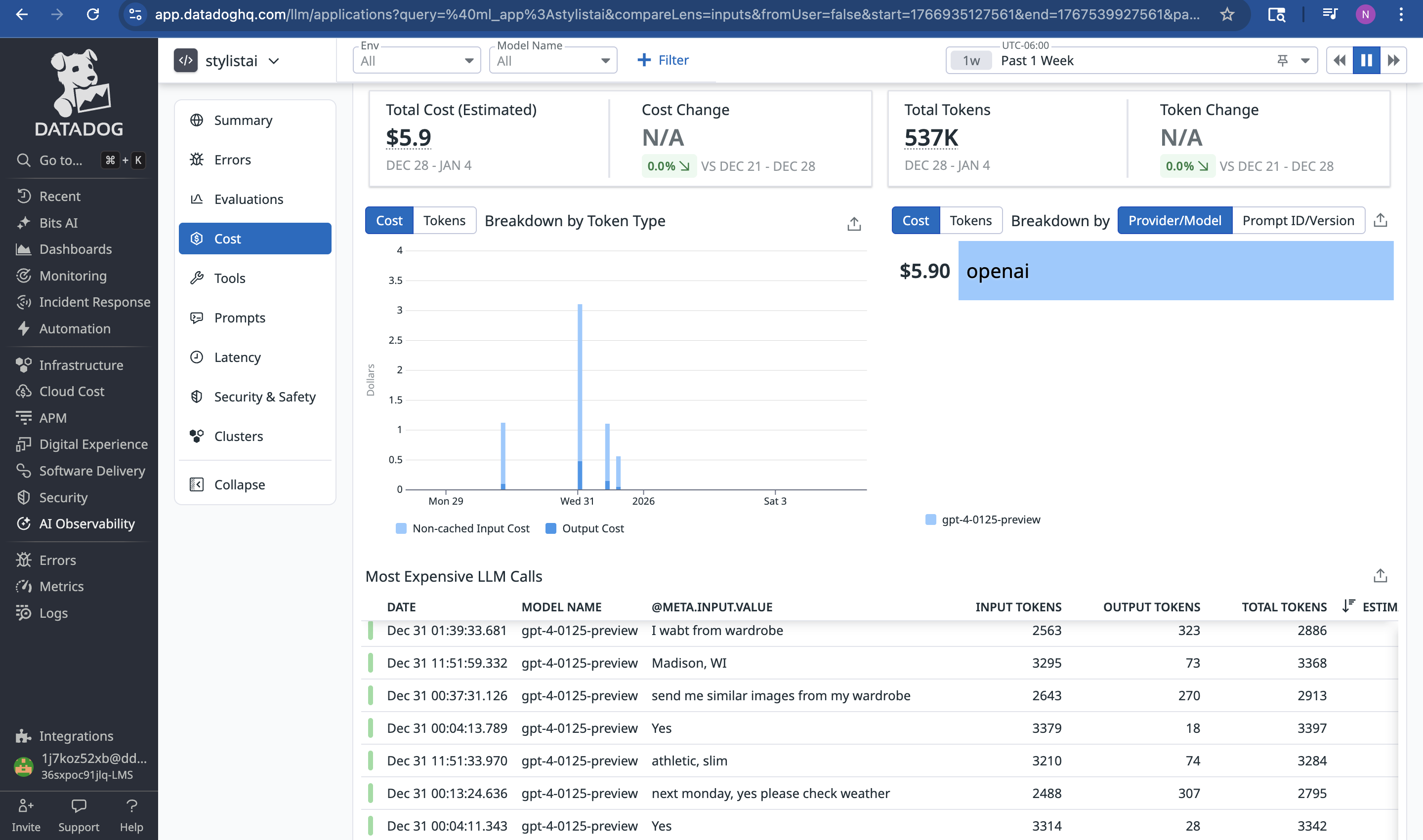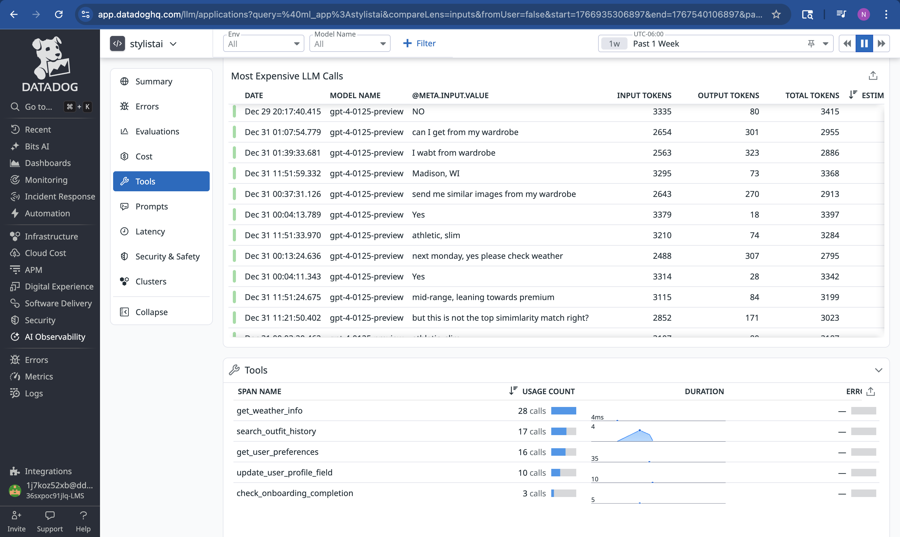 - Datadog LLM Observability revealed we were using 3x more tokens than expected