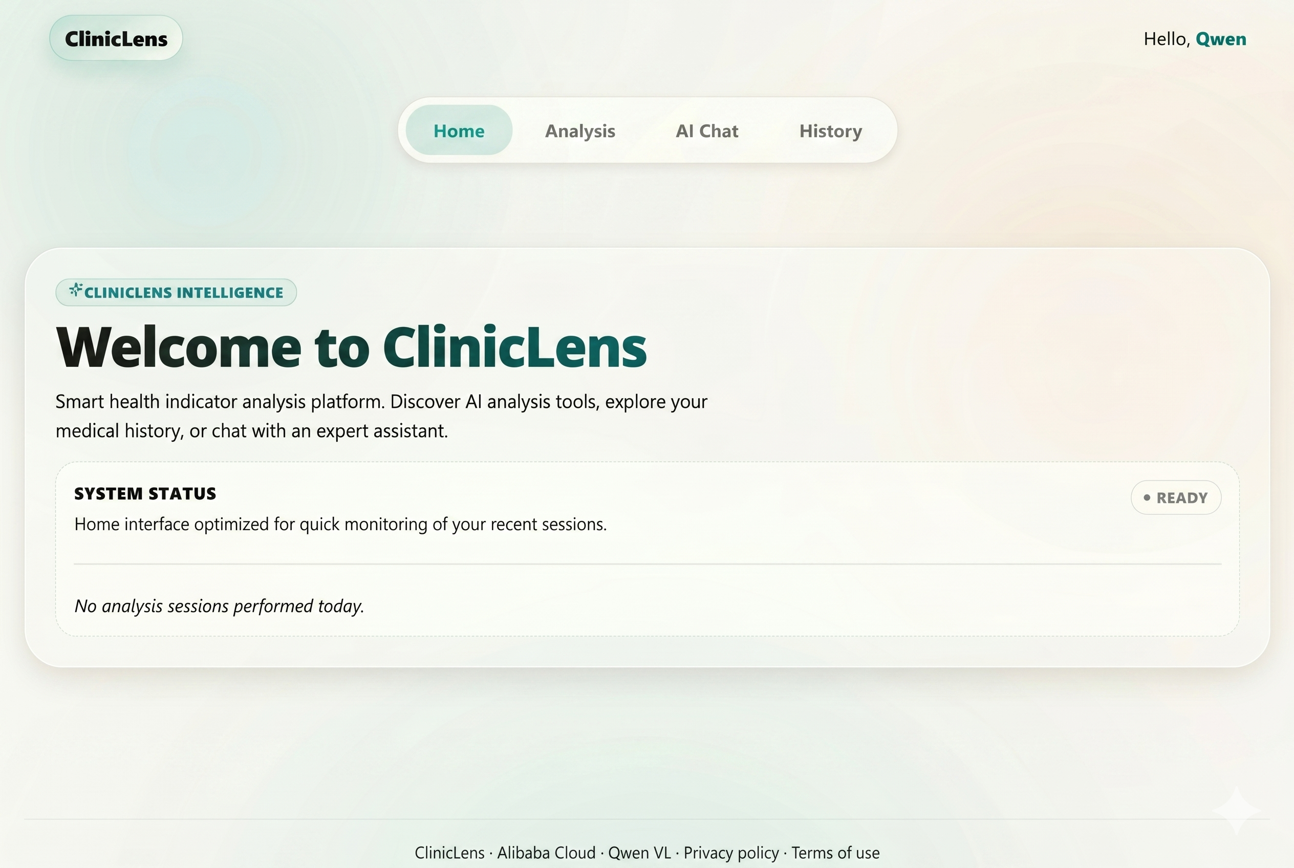 AI chat - Context-grounded chat using Qwen, with multi-turn memory, emergency keyword detection, and structured output including risk level, recommended actions, a 7-day plan, and a medical disclaimer.