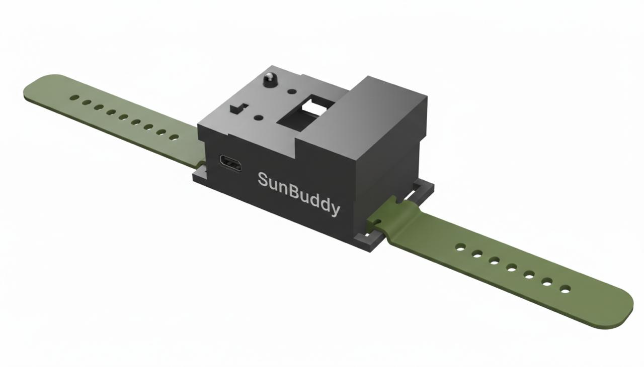 SunBuddy is a smart wearable ecosystem designed to make the invisible threat of UV radiation visible, audible, and personal. While traditional apps report UV based on your city's weather forecast, SunBuddy measures the actual UV intensity your skin is exposed to in real time and like a good buddy, it watches over you all day and debriefs you every evening.
