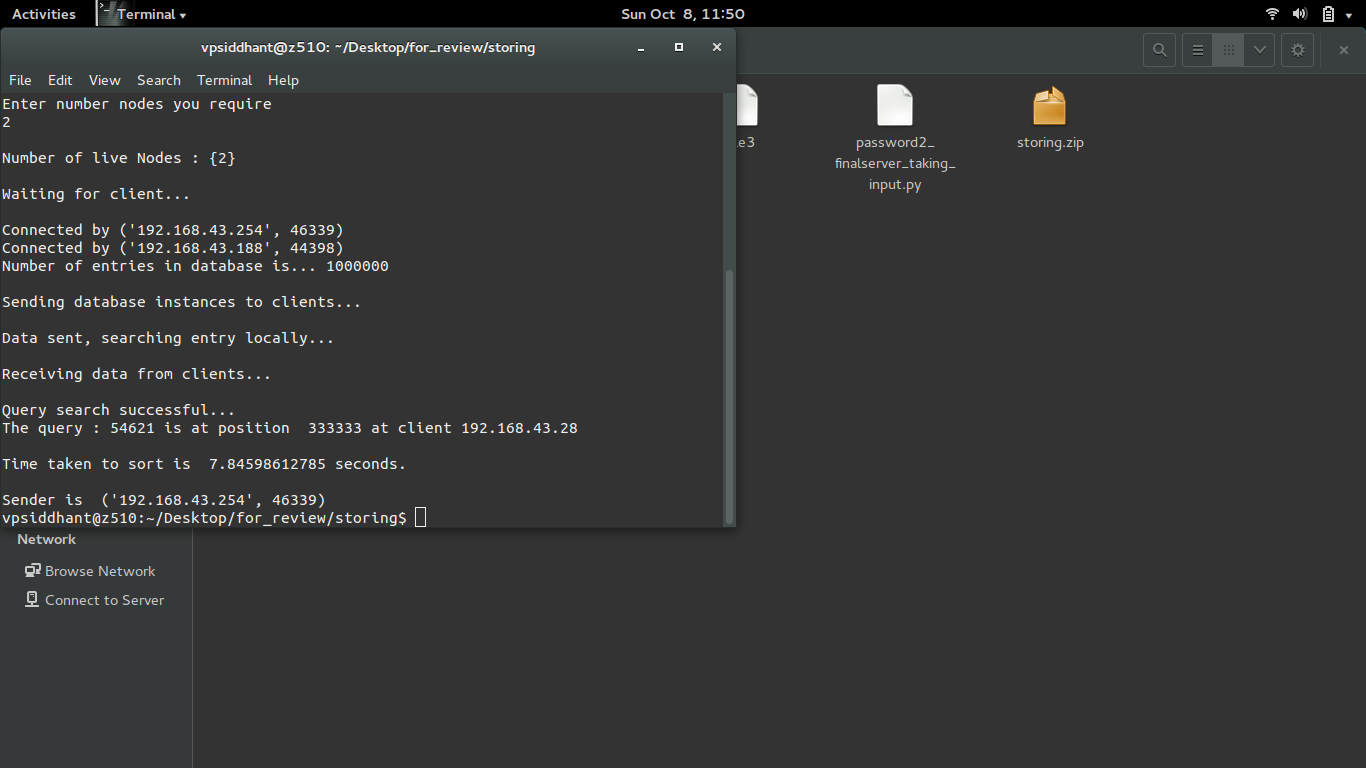 We overcame all the challenges we faced. We could dynamically find out the number of live nodes in a network and distribute the data accordingly