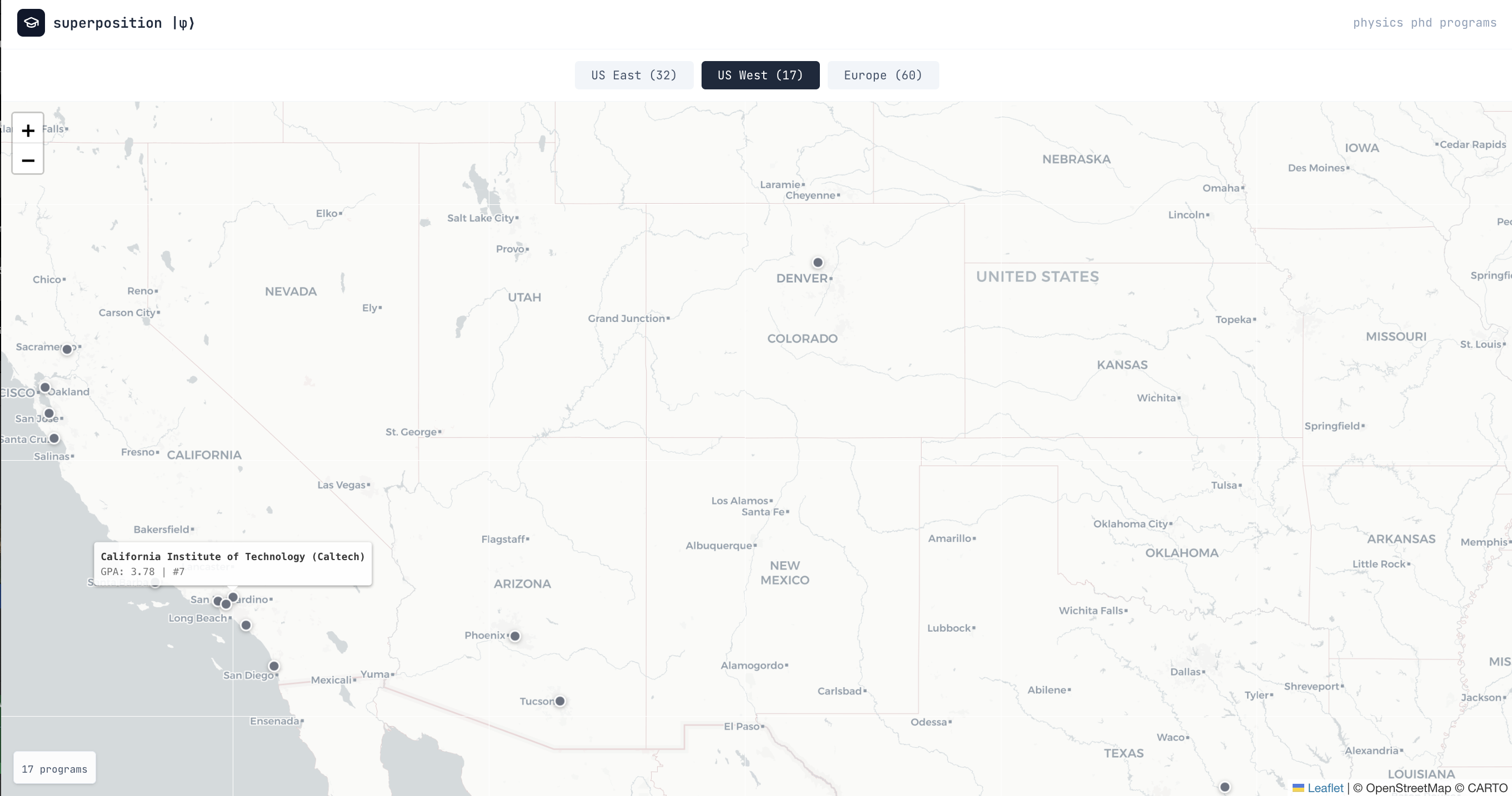 superposition lets you explore grad programs on a 2D map of Europe and the States. We hope to add support.