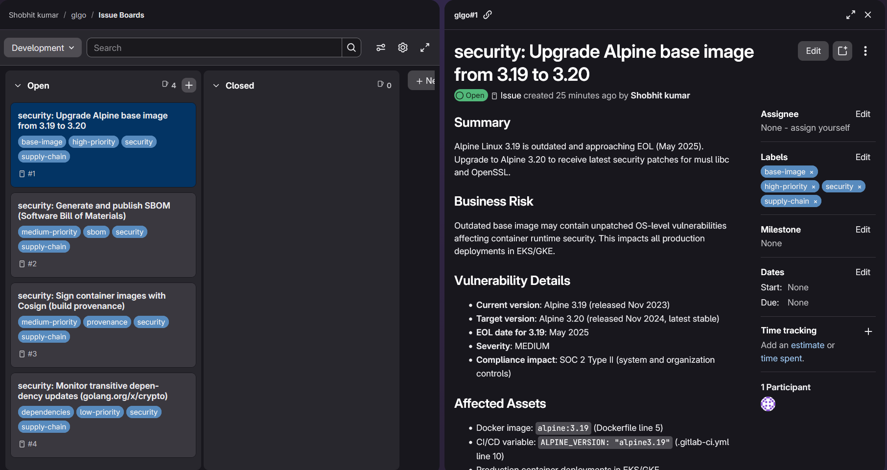 I have some features planned for the next iteration: - Deep Container Scanning: Extending capabilities to analyze container images deeply. - Deep Dependency Analysis: Testing the agent’s ability to auto generate Software Bill of Materials (SBOM) and perform dependency graph analysis for more accurate responses. - Flows: Implementing GitLab flows that trigger only on dependency updates. - Intelligent Triage: Using pattern analysis to identify similar issues and auto-assign them to the right developers based on past history.