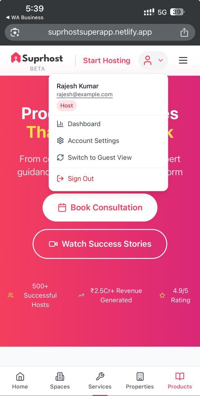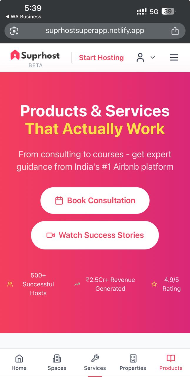 “There’s no clear playbook for Airbnb success.” “Legal rules change city to city—how do I stay compliant?” “My marriage hall / gym / sports turf sits empty most days; can’t I list it like an Airbnb?” Airbnb gives exposure, yet India lacked an ecosystem to actually help hosts—especially owners of commercial spaces—launch, manage and scale. That gap sparked Suprhost: a digital, AI-powered, end-to-end platform that lets anyone turn any space into income.