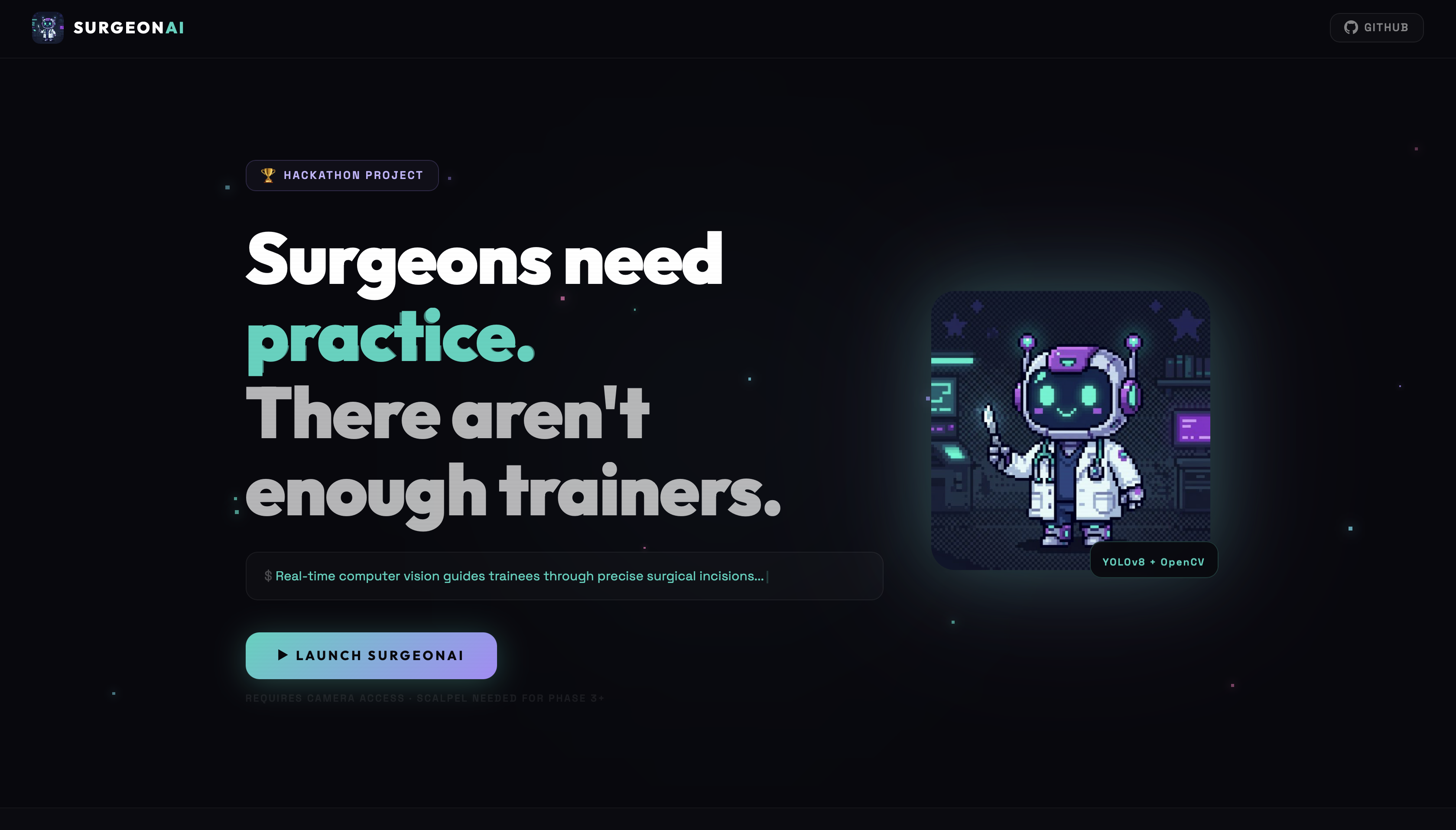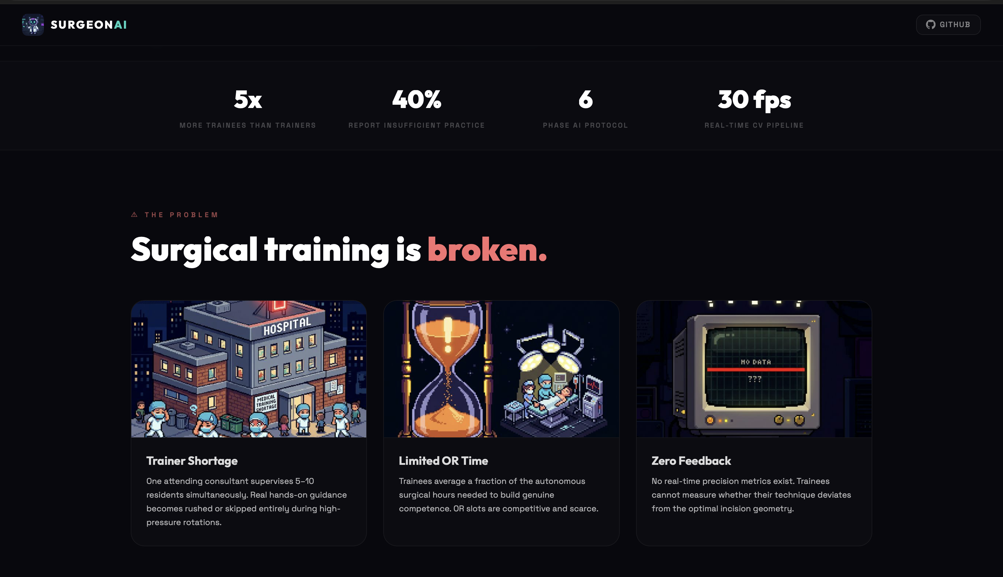Inspiration The realization that forty percent of surgical trainees lack sufficient practice due to a severe shortage of attending surgeons inspired the creation of a real-time, AI-driven virtual mentor.