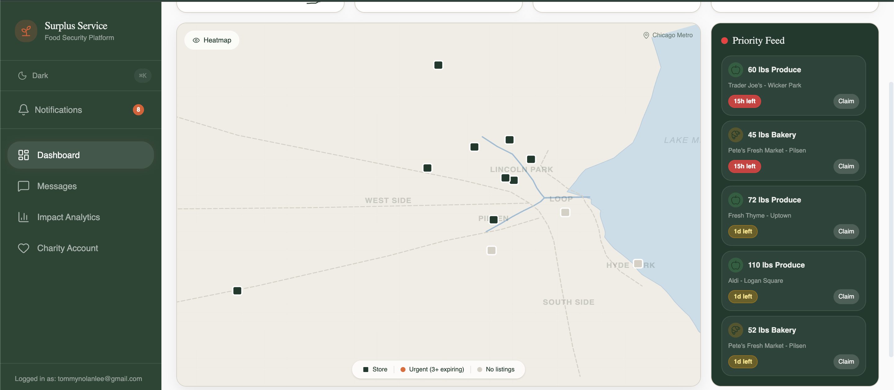 Our website seeks to take the surplus amount of food that grocery stores or restaurants have at the end of the day and distribute it among different charities, food drives and shelters for those in need. The website does this by having a login for business's to log their donations and share how much food they can donate. On the other hand for charities/food drives, after they register onto the site, they can claim any surplus food that isn't expired from grocery marts or restaurants.