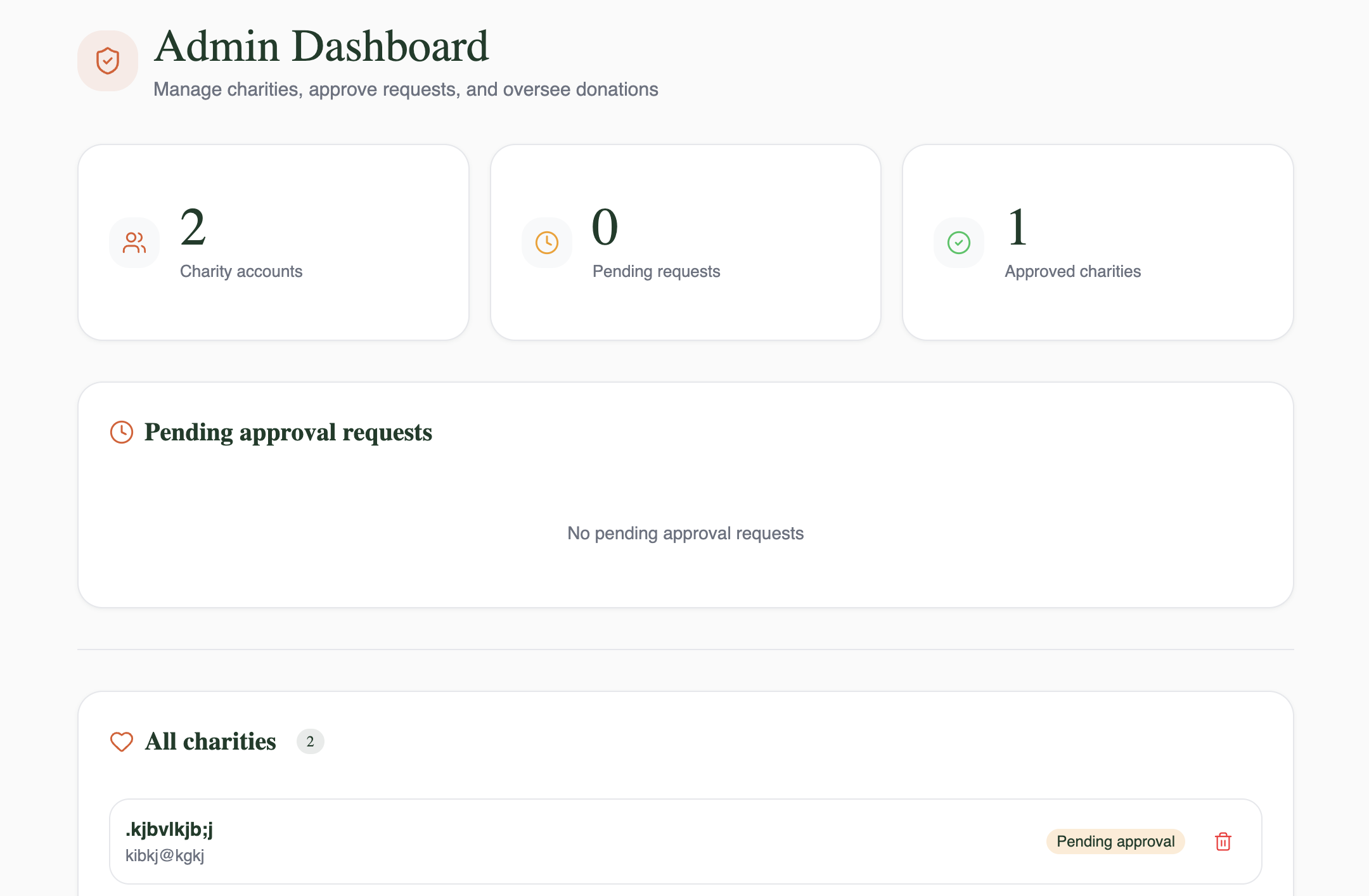 Some challenges we ran into were making the website fully working and finding all the bugs in the website since AI was used to create it there were many we had to find. The most challenging bug fix was making the map on the charity dashboard work to our liking. Every time we made a change to fix it either nothing would happen or another problem would appear.