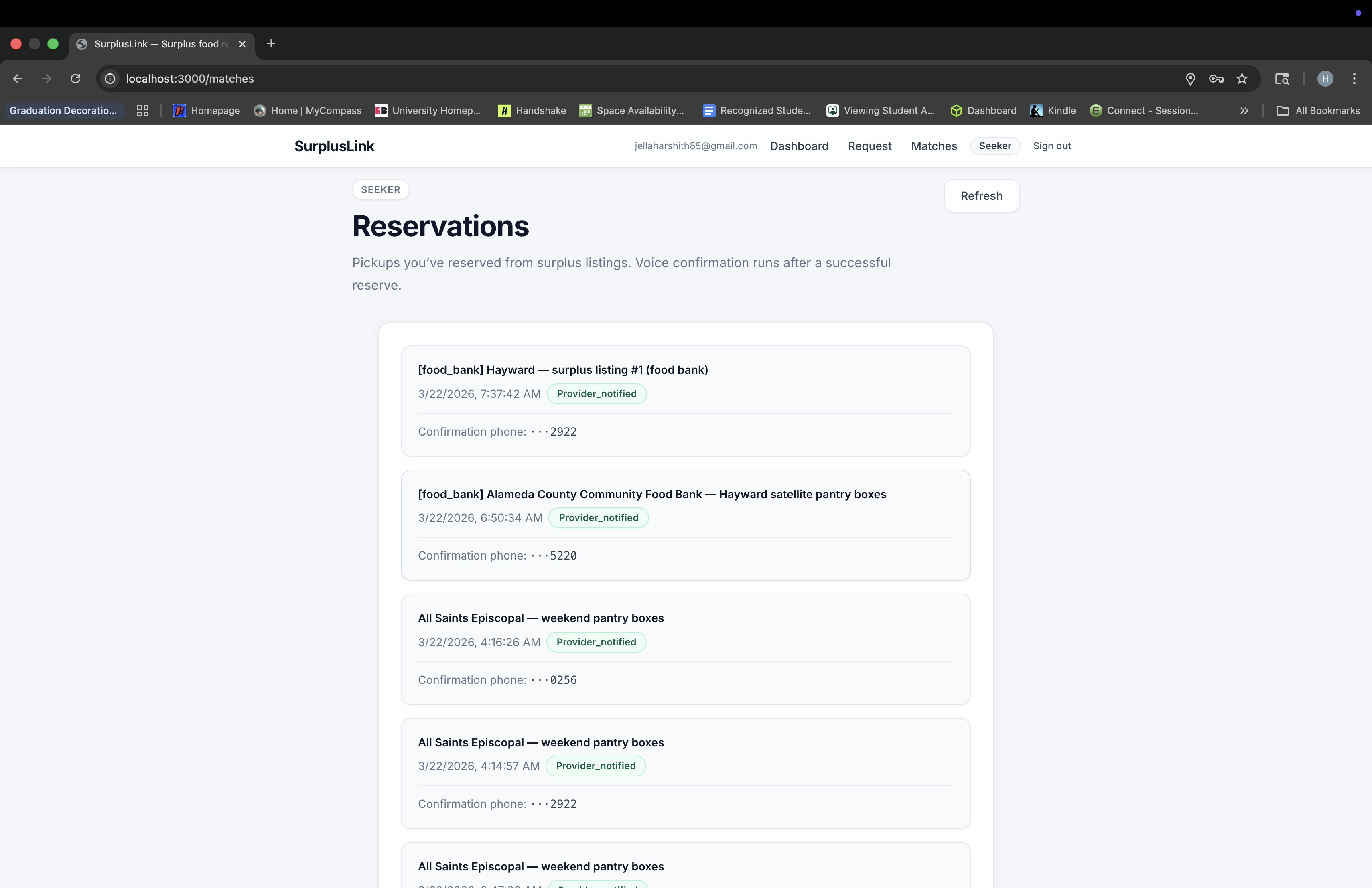 - Built a fully working end-to-end system (AI → match → reserve → confirm)