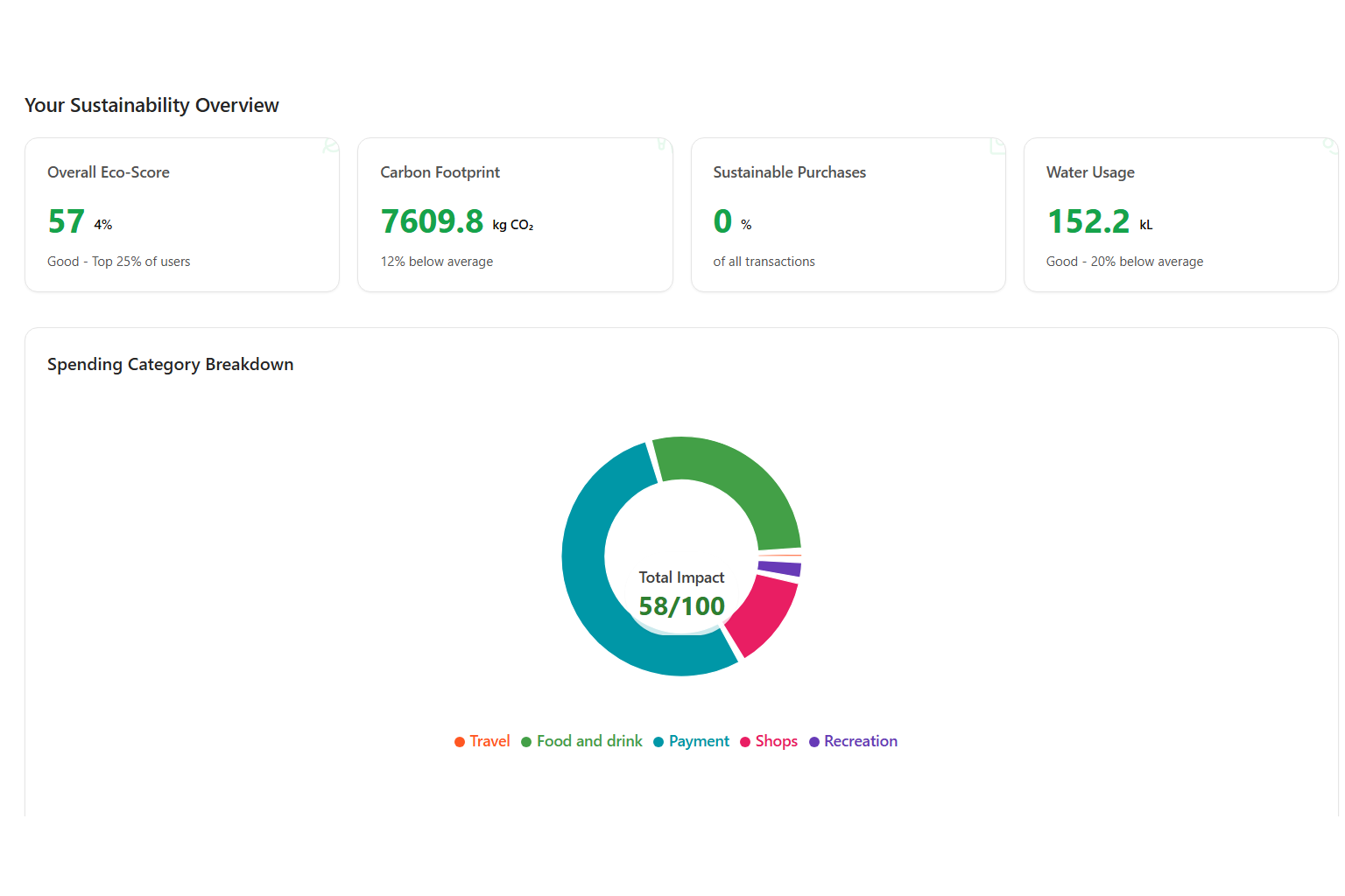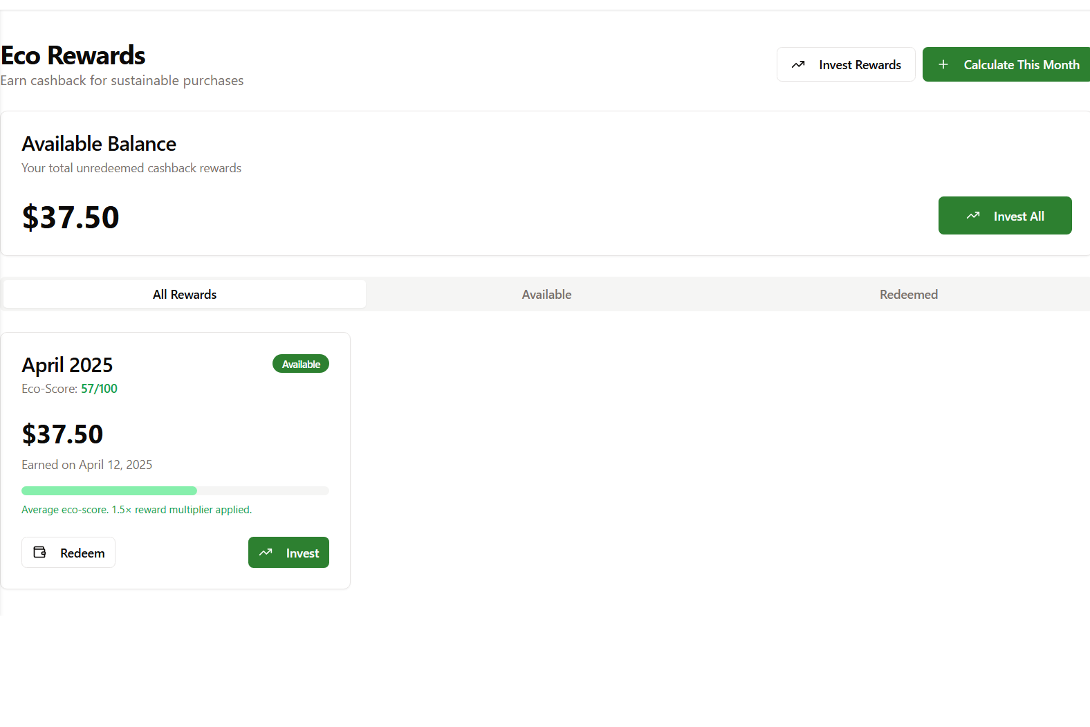 The next step that we plan to take is to work with banks to sponsor real-money cashback rewards for customers who have environmentally friendly spending habits. We also plan to gamify this experience through achievements, streaks, and a leaderboard encouraging player competition. Combined, these additions will increase player engagement and make a larger impact towards the environment.