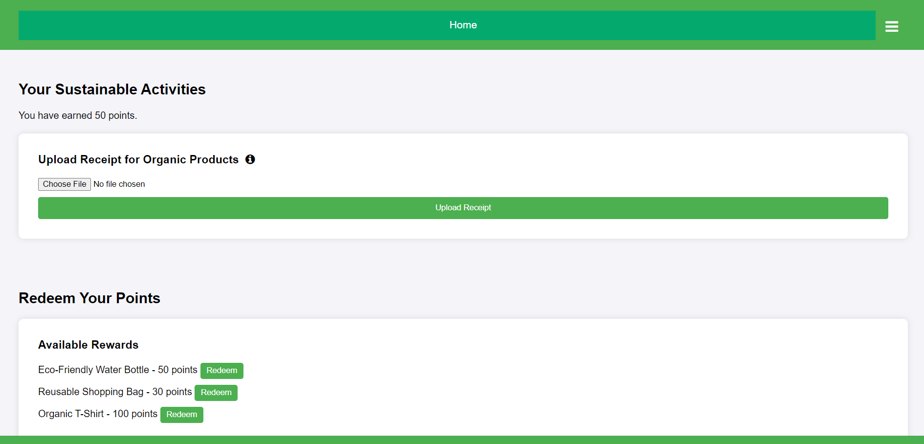 - Rewards System: Rewards users for making sustainable choices, such as using public transport or purchasing eco-friendly products.