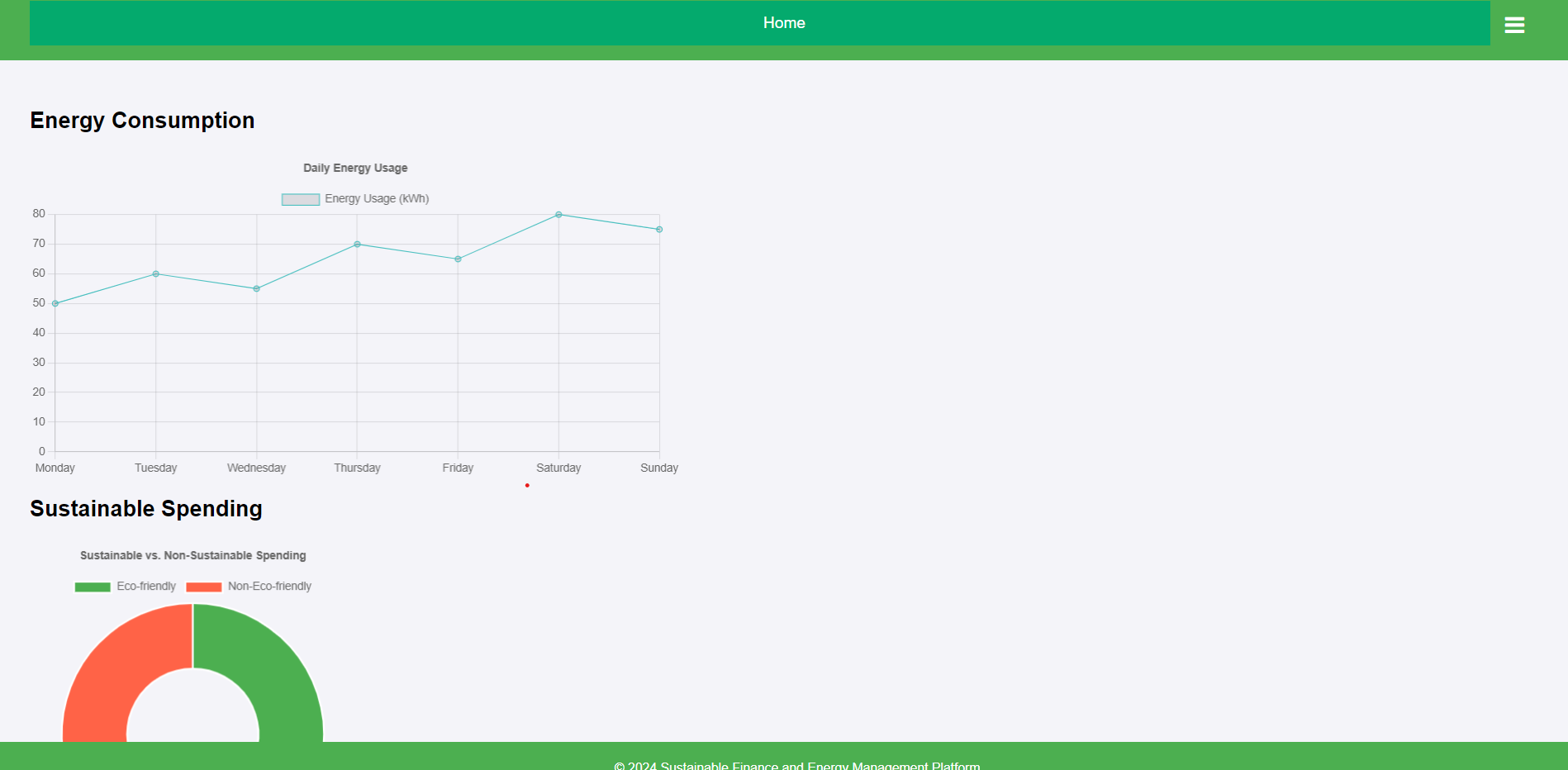 The Sustainable Finance and Energy Management Platform provides users with a comprehensive view of their financial activities and energy consumption. Key features include: