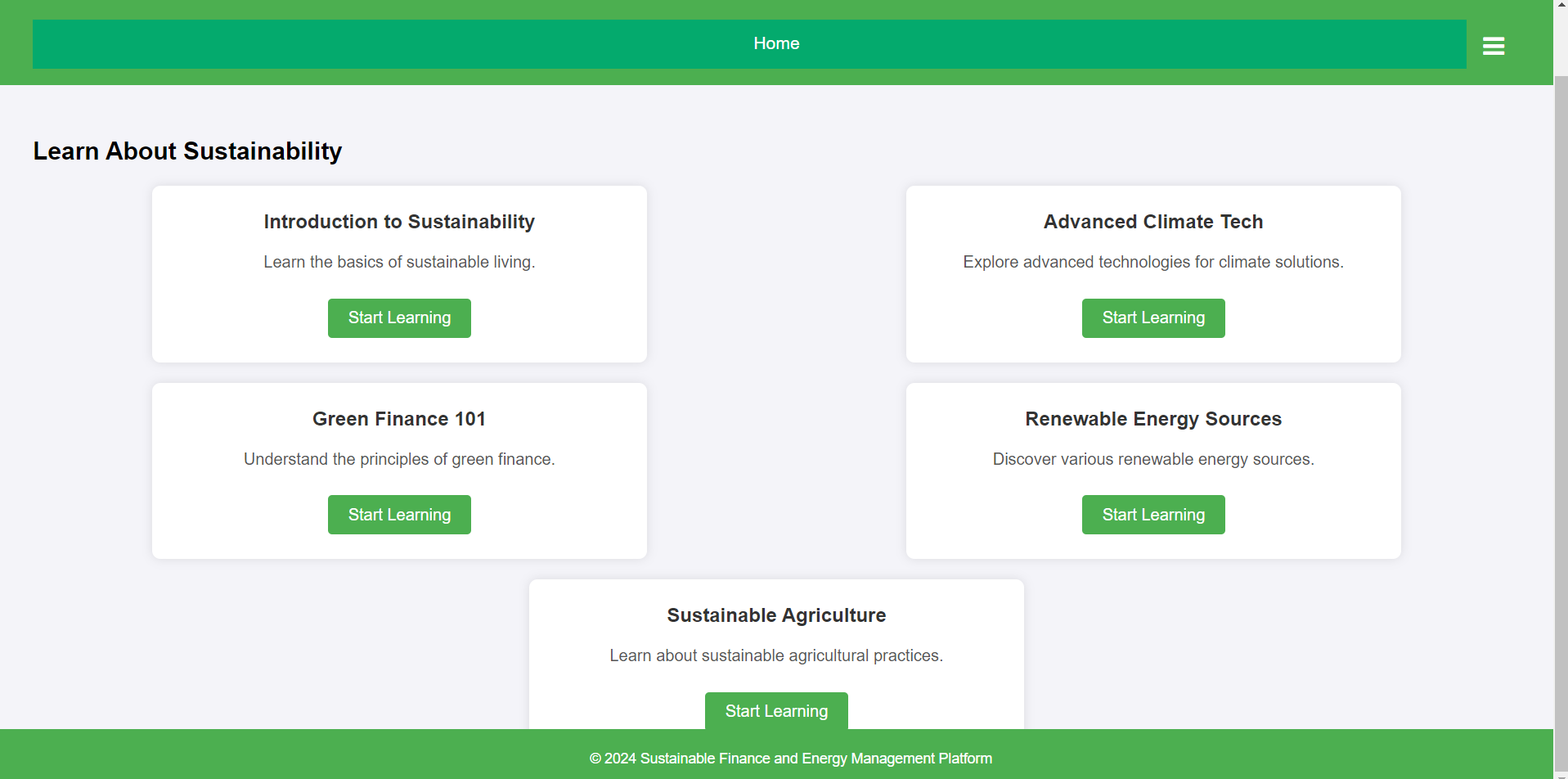- Green Investment Portal: Guides users through investing in sustainable projects or companies, providing data on the environmental impact of their investments.