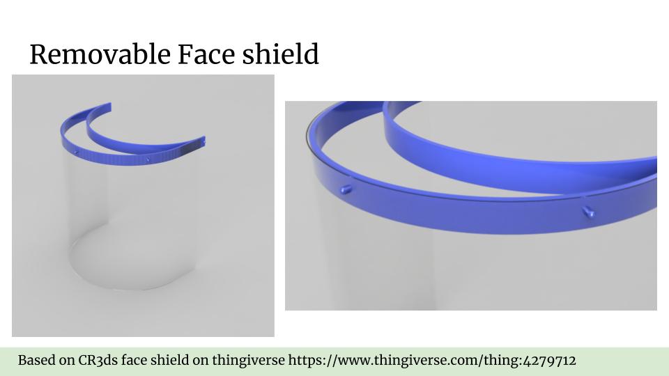 I decided on using PET for the shield as recycled PET is widely available from plastic bottles (this also diverts plastic bottles from ending up in landfills). It also shares many qualities with available face shields. I decided on HDPE for the crown of the face shield as it's the most recycled plastic, and it's very sanitary, safe, cheap, and easy to work with. Recycling bins, along with various other useful furnishings can be made with composite material from recycled nitrile gloves.