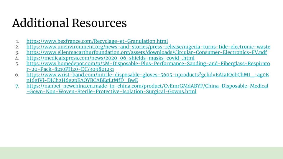 I looked into medical gowns, and face masks a little. These are both things that are already made of very recyclable material, and are yet more things that don't have adequate support for recycling.