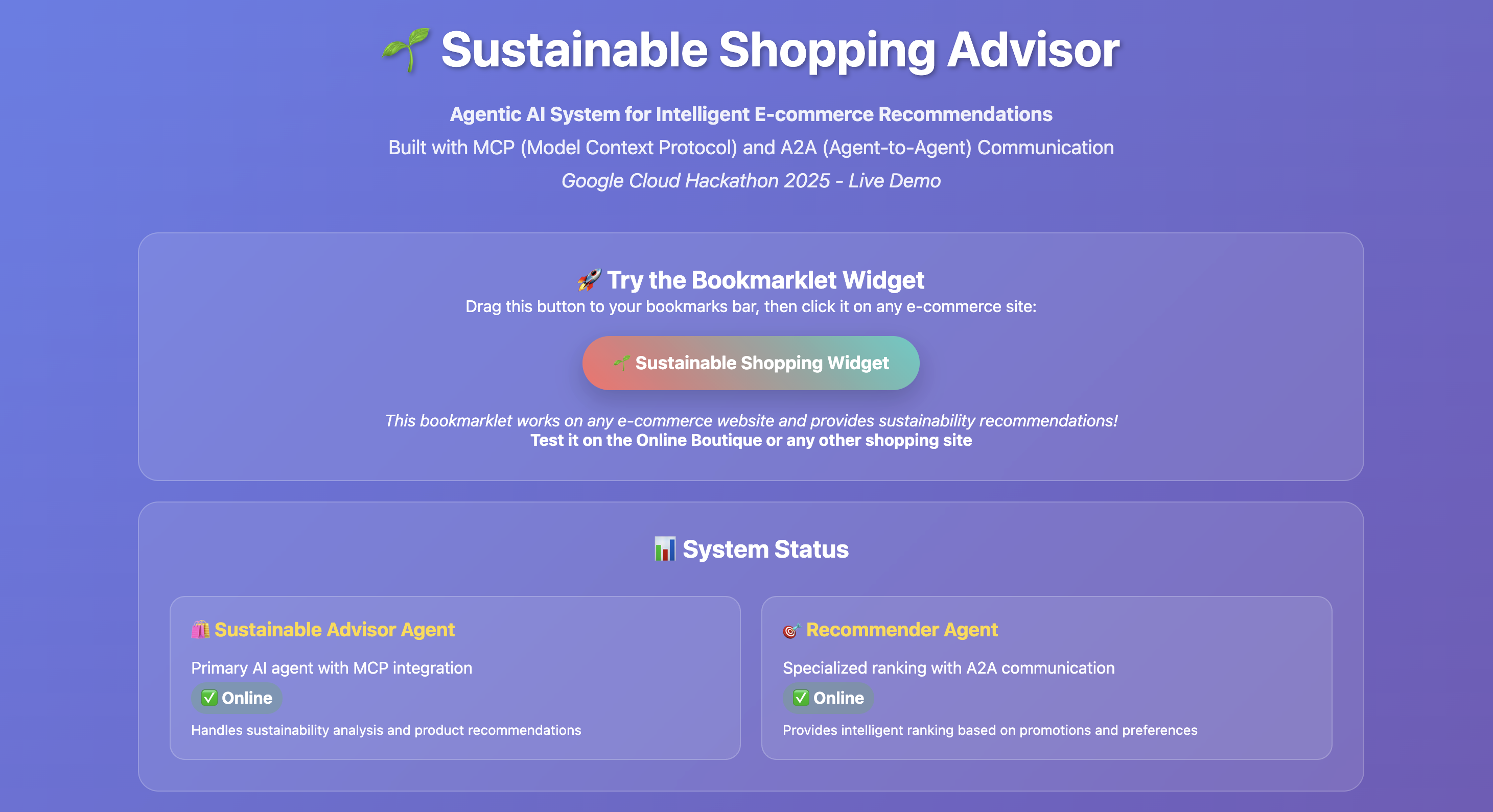 - Agents: SustainableAdvisorAgent + RecommenderAgent using ADK