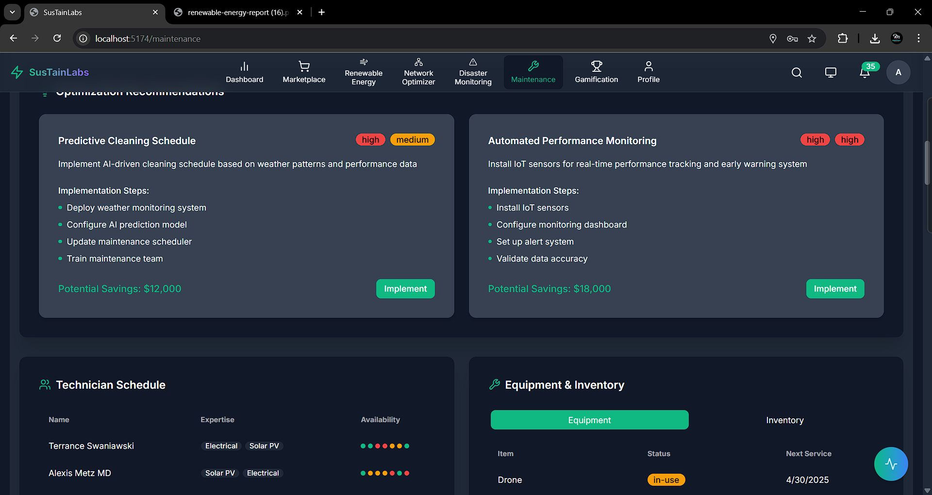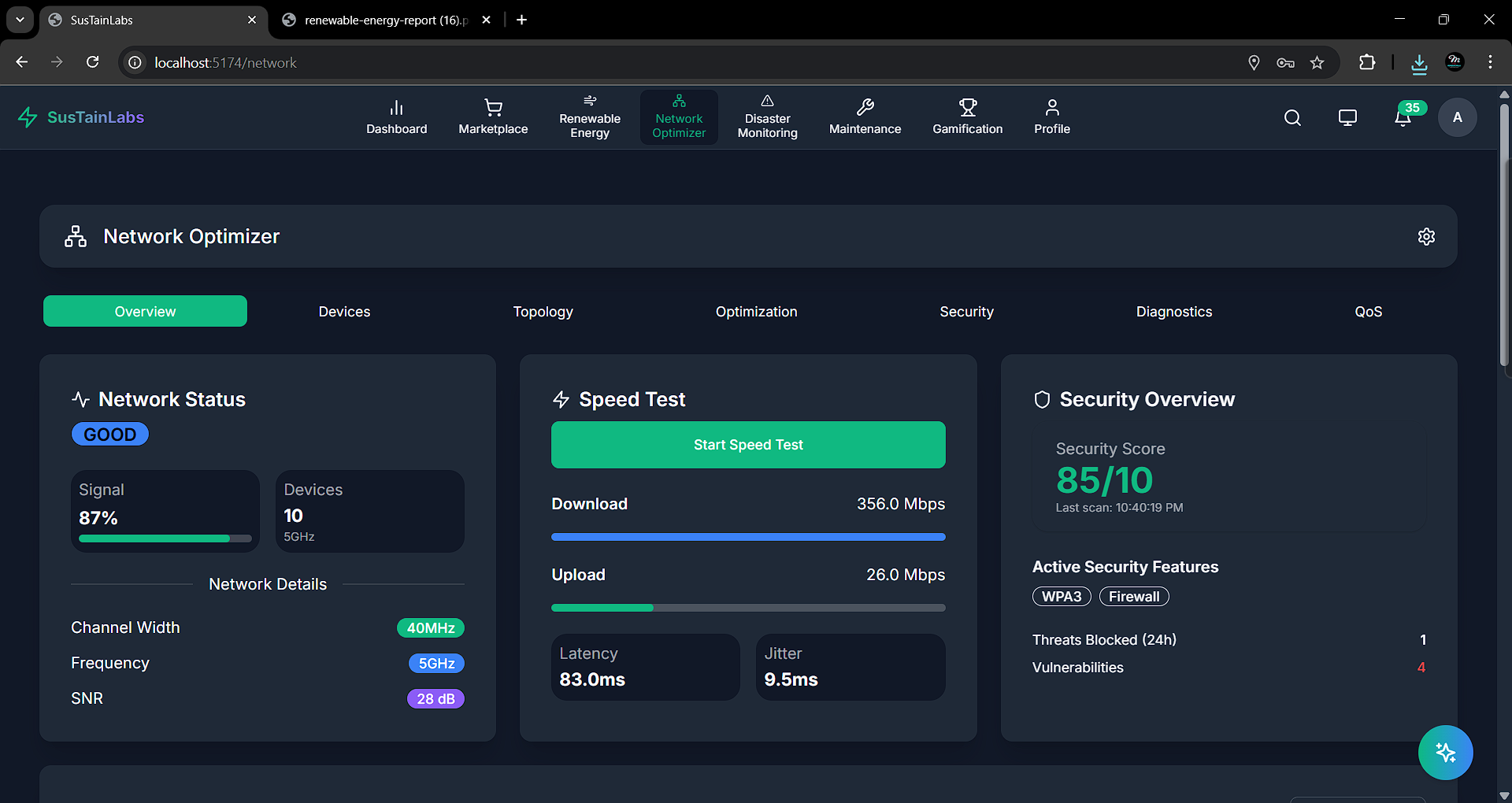 SustainLabs is an AI-powered renewable energy management platform that transforms fragmented energy infrastructures into unified, efficient, and trustworthy systems.