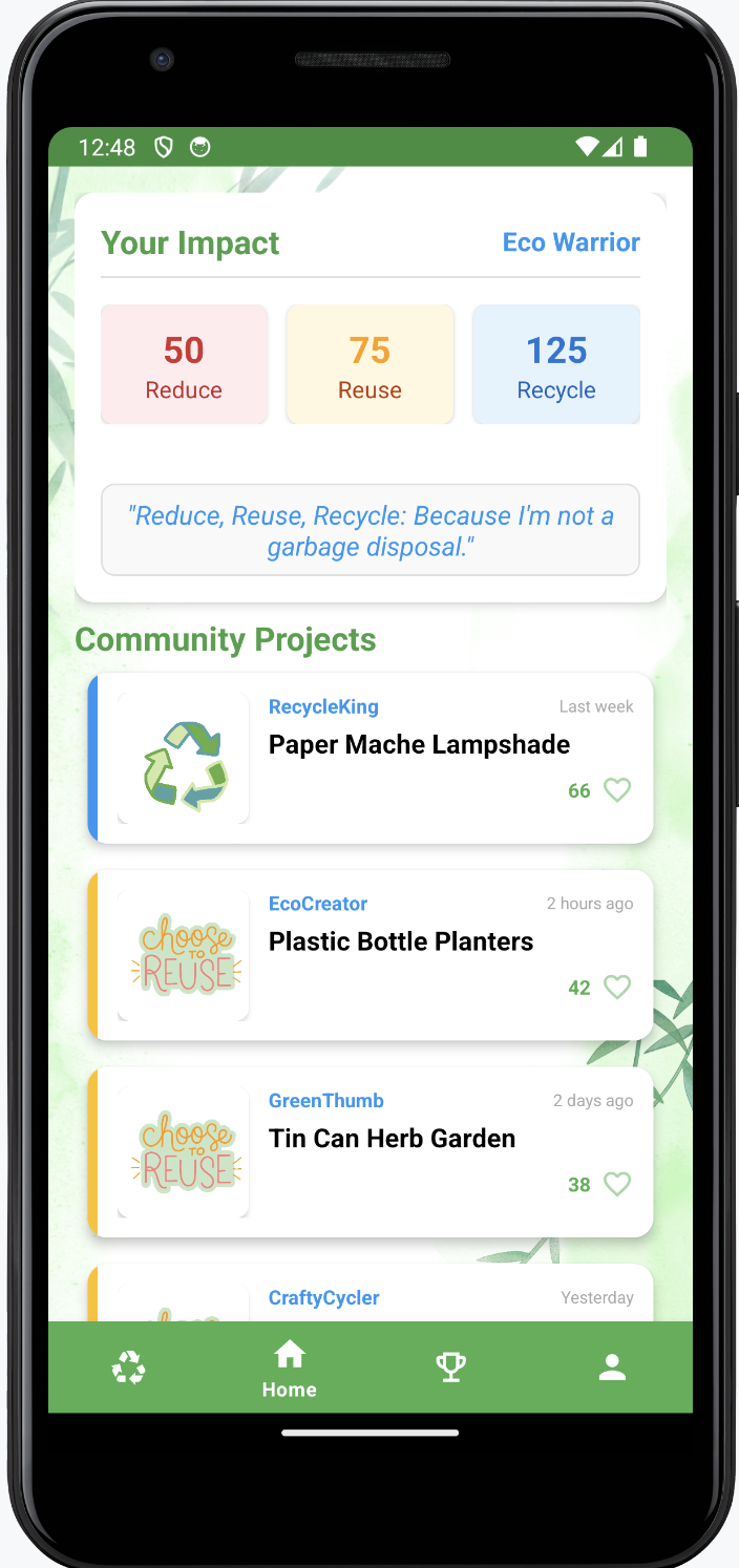 Users can share their eco-friendly achievements with the community, track completed activities, and inspire others. The app remembers your recent analysis so you can quickly reference suggestions.