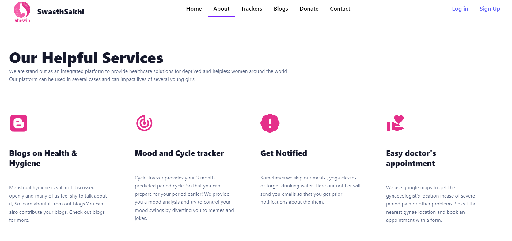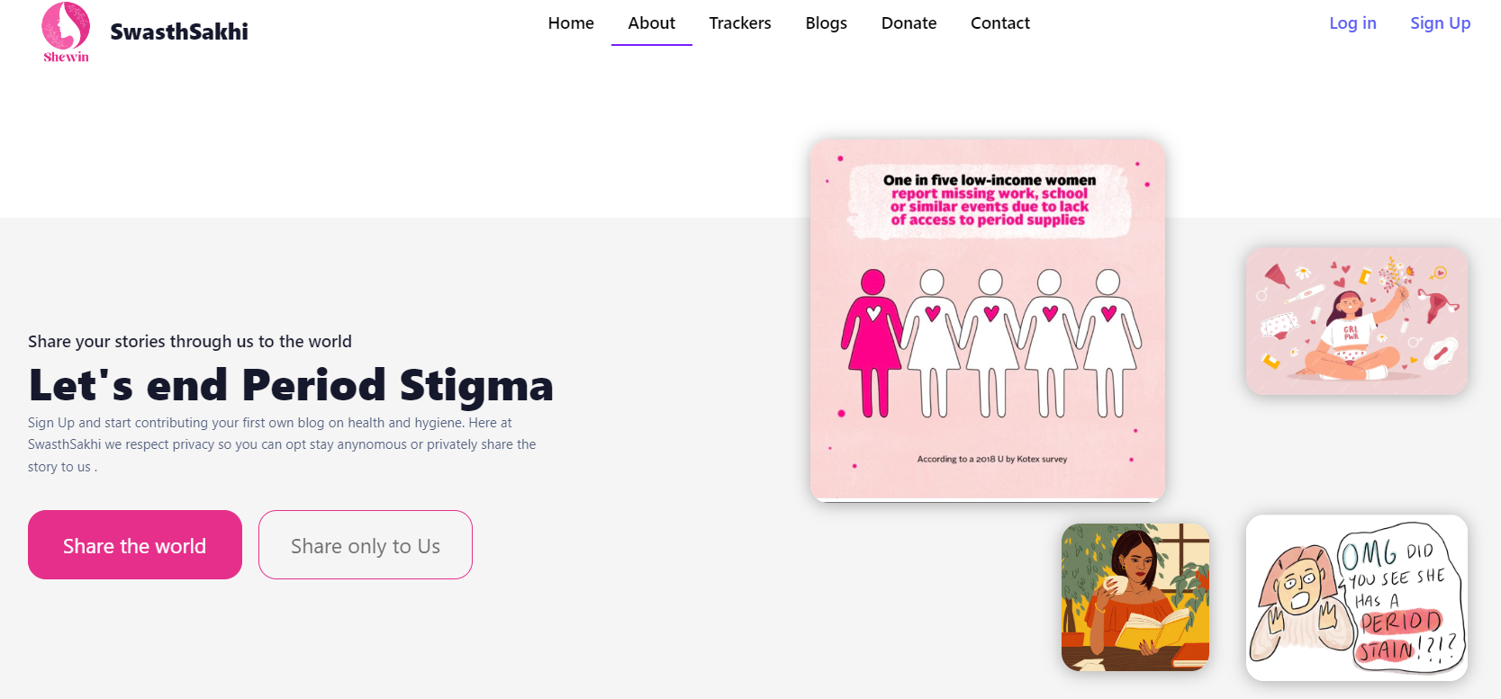 SwasthSakhi was created to tackle period poverty and improve access to menstrual and women’s healthcare resources. Despite growing awareness, many women lack access to proper healthcare, menstrual hygiene education, and support systems. The platform aims to bridge this gap by providing tools for health tracking, connecting users with healthcare services, and building a supportive community. It also works to reduce the stigma around menstruation and promote open access to health information.