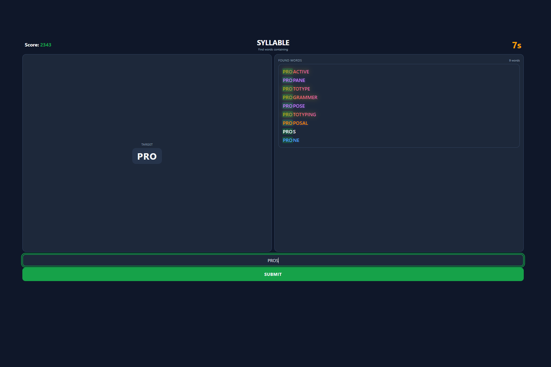 You have 60 seconds to find as many valid words as possible that include it.
