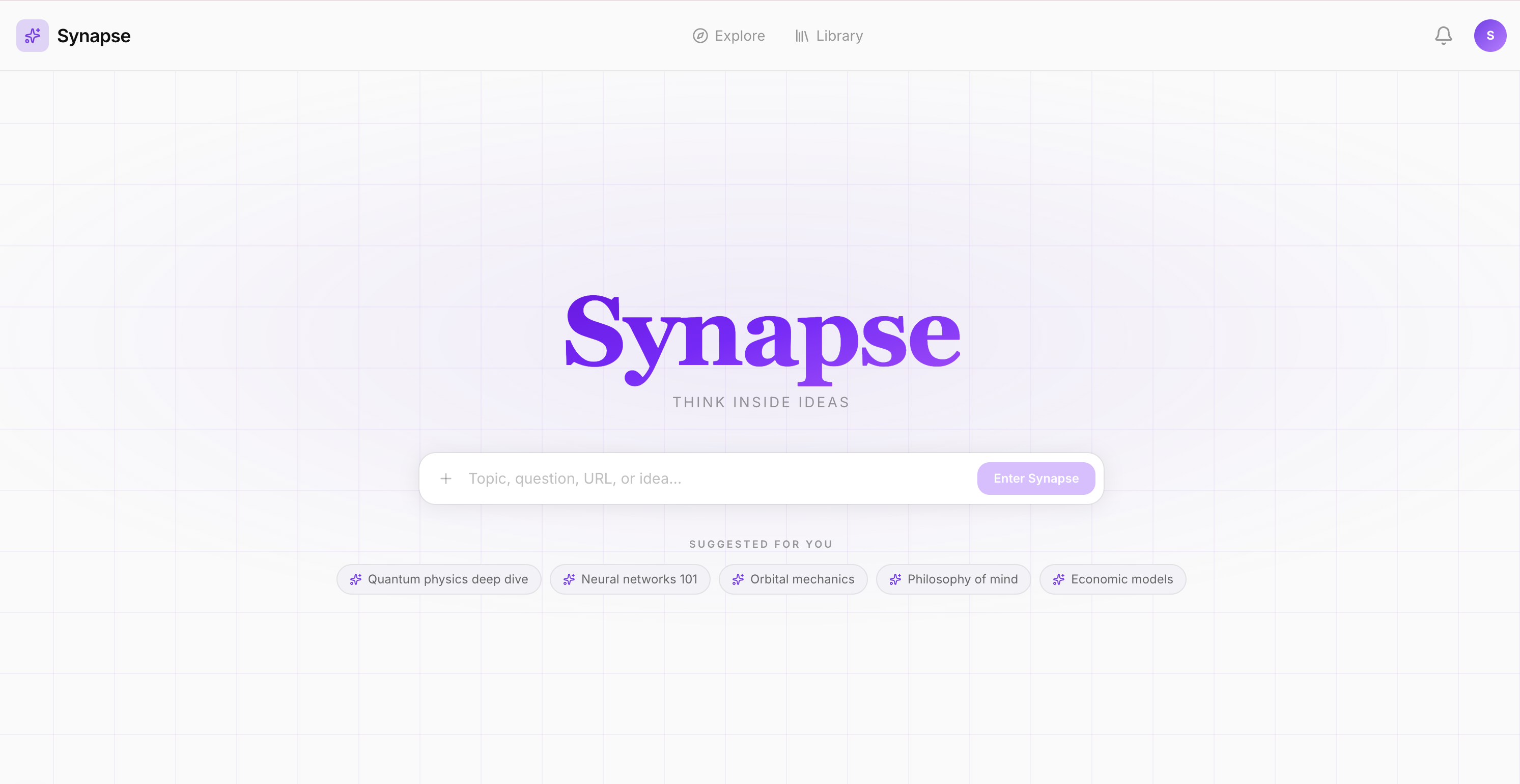 Synapse is an AI tutor that teaches on an infinite canvas. You ask a question and instead of a wall of text, you get a 3D model you can rotate, a live graph you can interact with, and a diagram that maps how ideas connect, all placed spatially like a whiteboard.