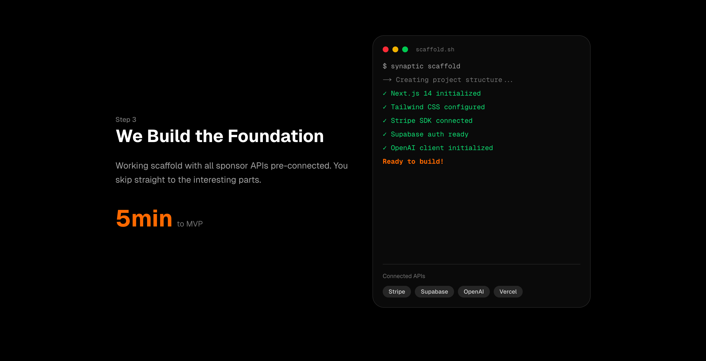 Instant Setup: It generates the entire project skeleton—connecting the sponsor APIs you need—so you have a working "Hello World" in minutes, not hours.
