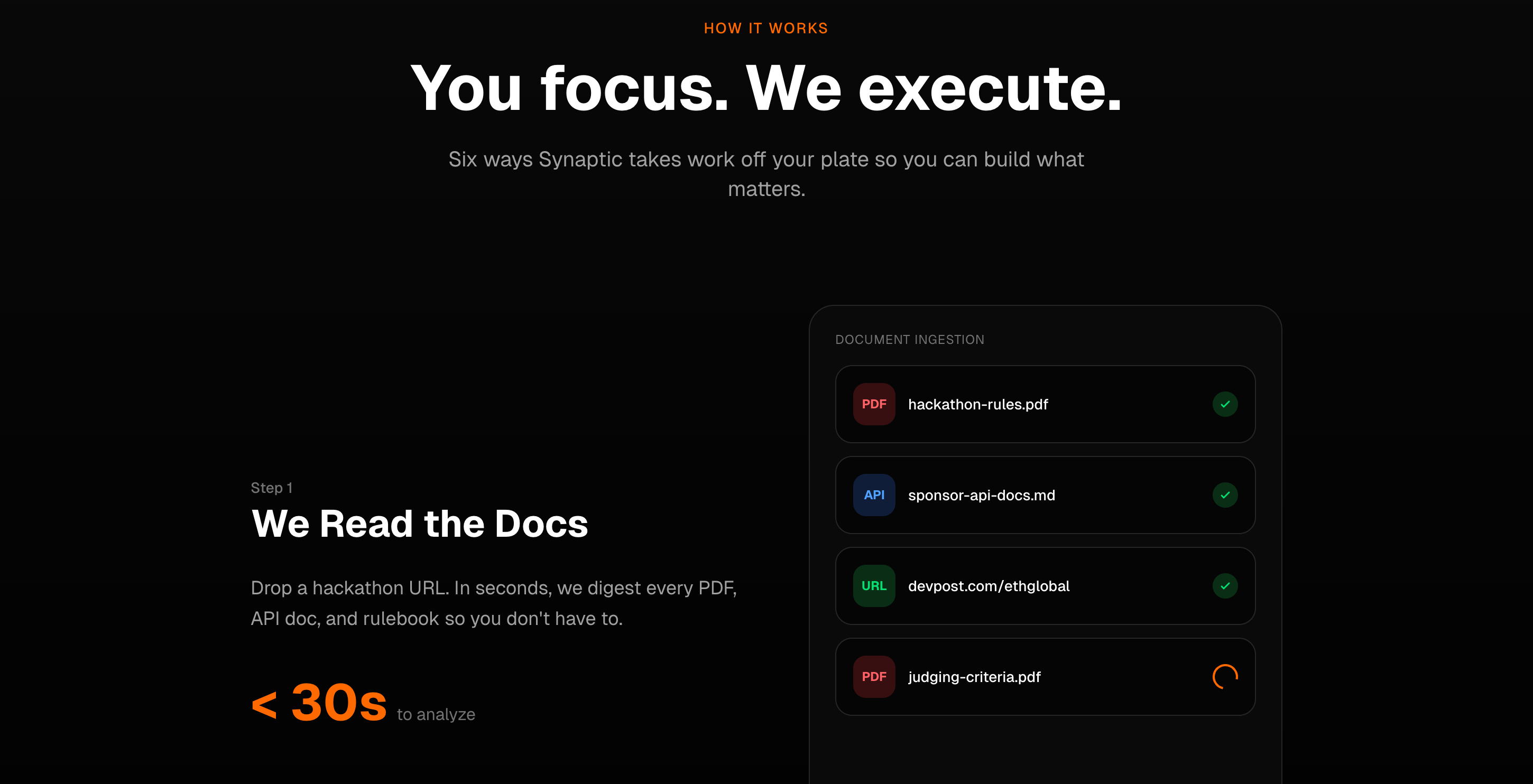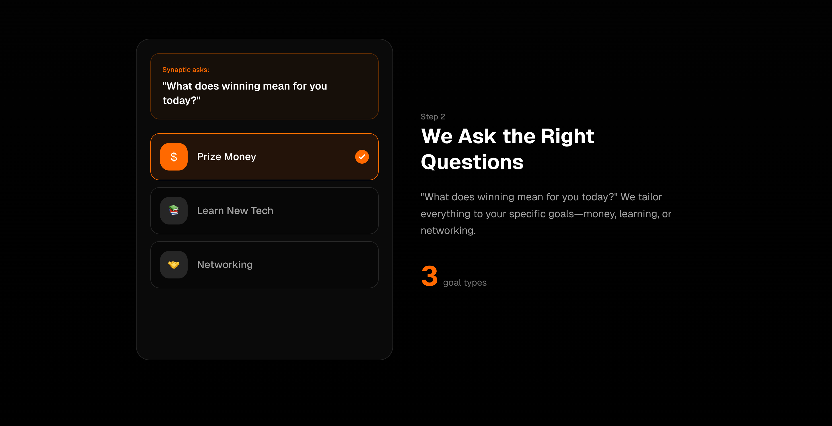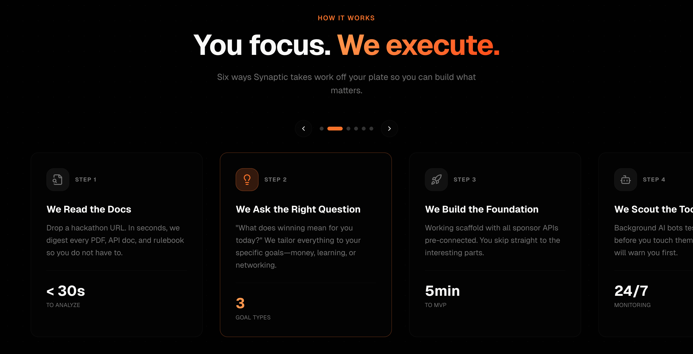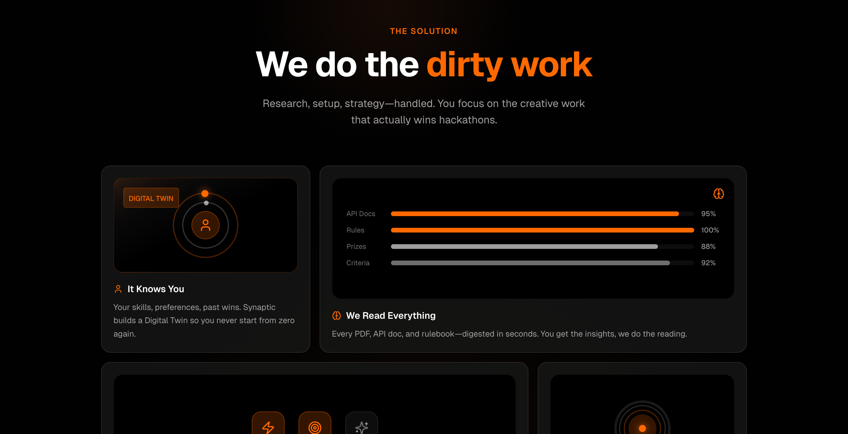 - The Brain: It Strategizes (Value Alignment) This is Synaptic's superpower. When you feed it a hackathon website, it doesn't just summarize text; it plays to win.