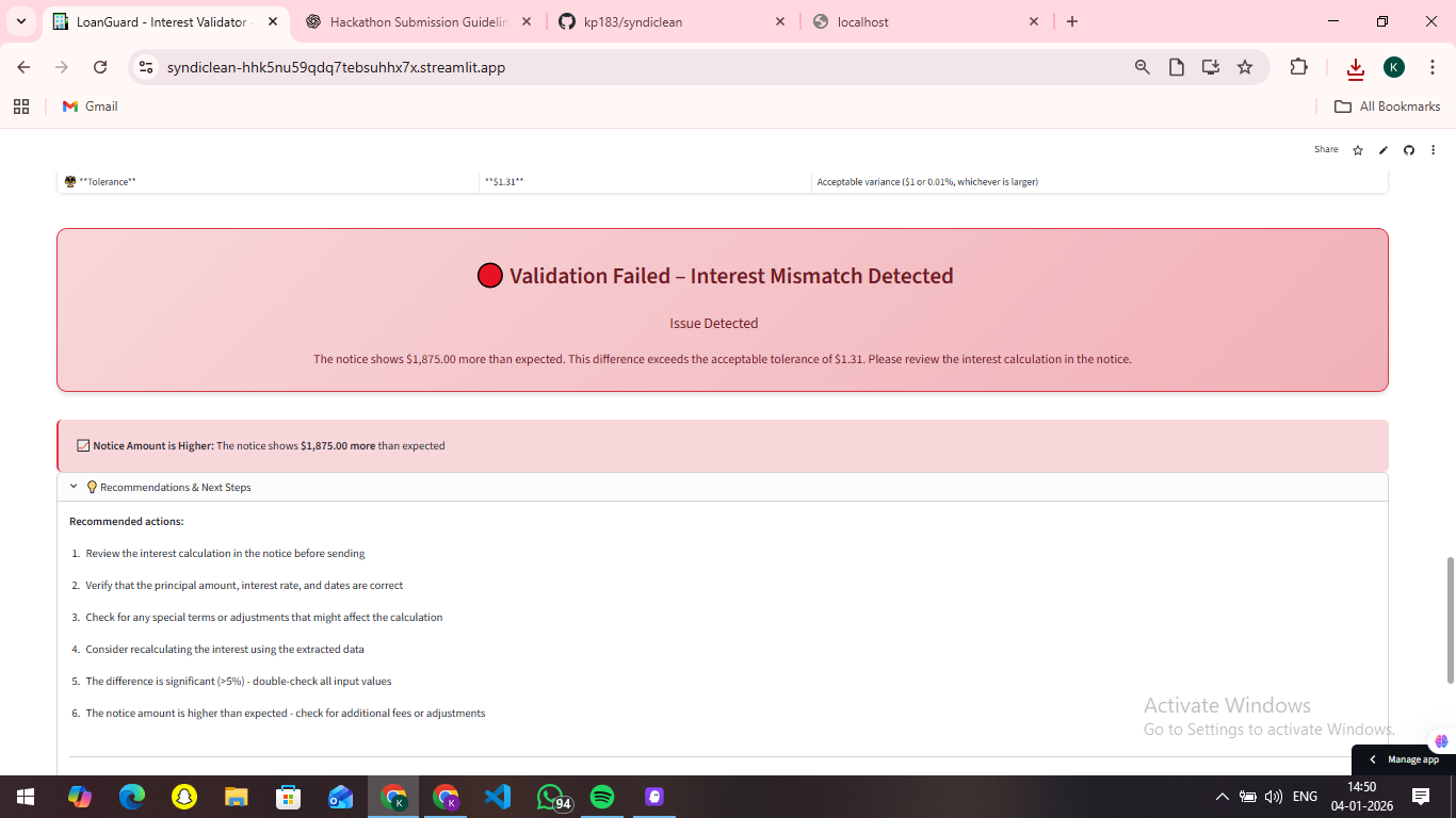 We were inspired to build SyndiClean to address this last-minute risk. The idea was simple: if banks already follow standard formulas, why not automate the final validation step before notices are sent?