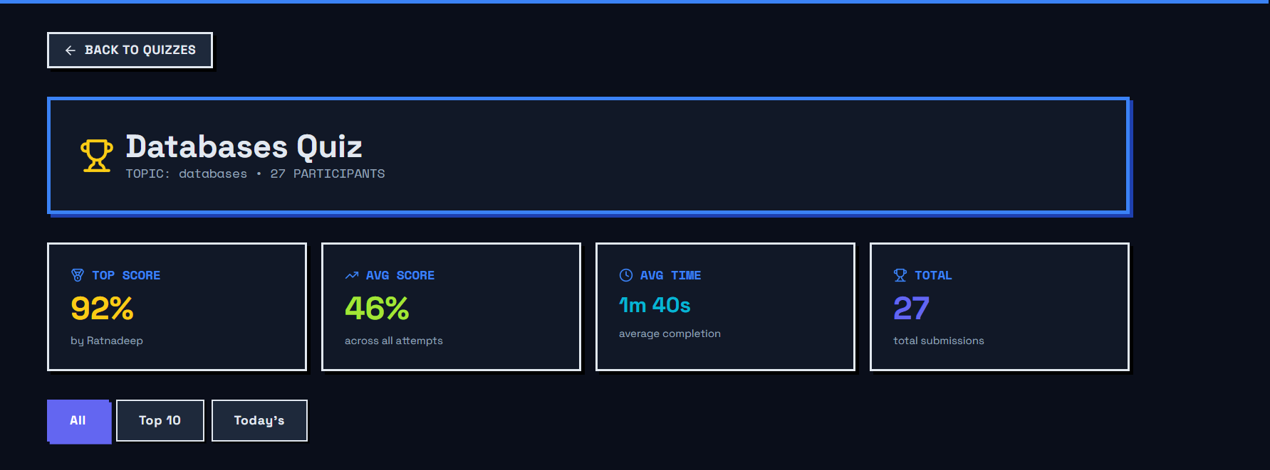 Problem: Leaderboards need to refresh instantly as users complete quizzes.