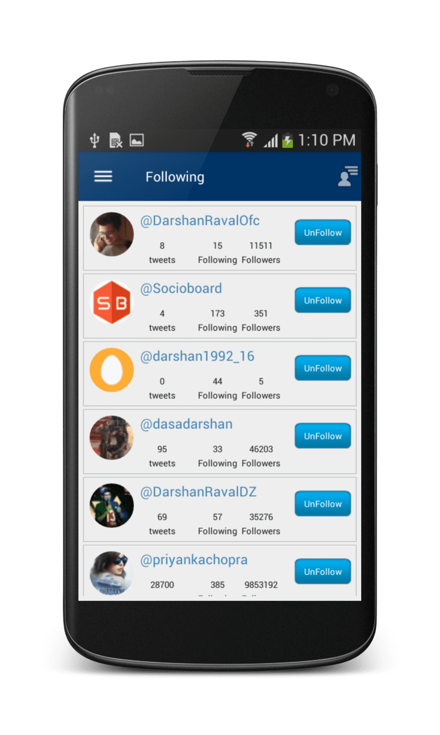 All Following: You can see list of user whom you are following in this view.