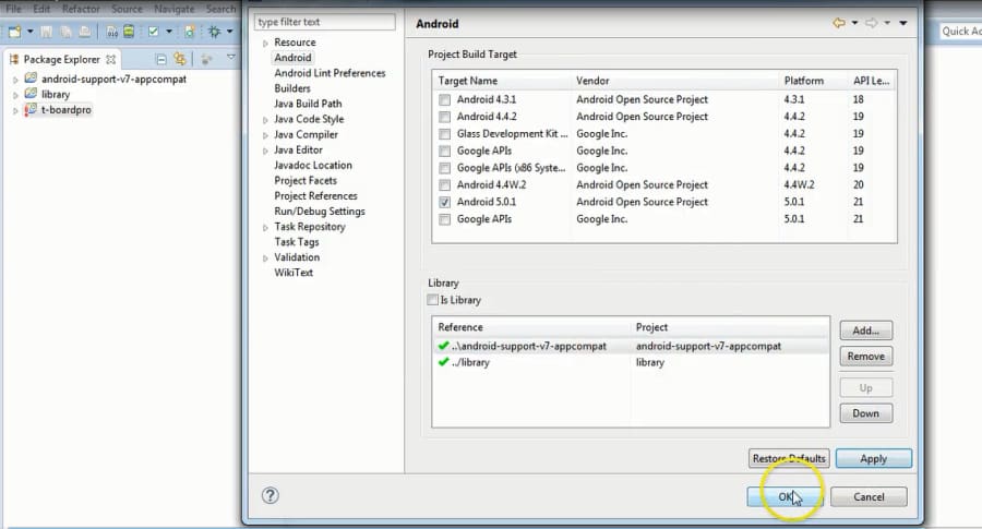 Select tboardpro , android support library and viewpager library.