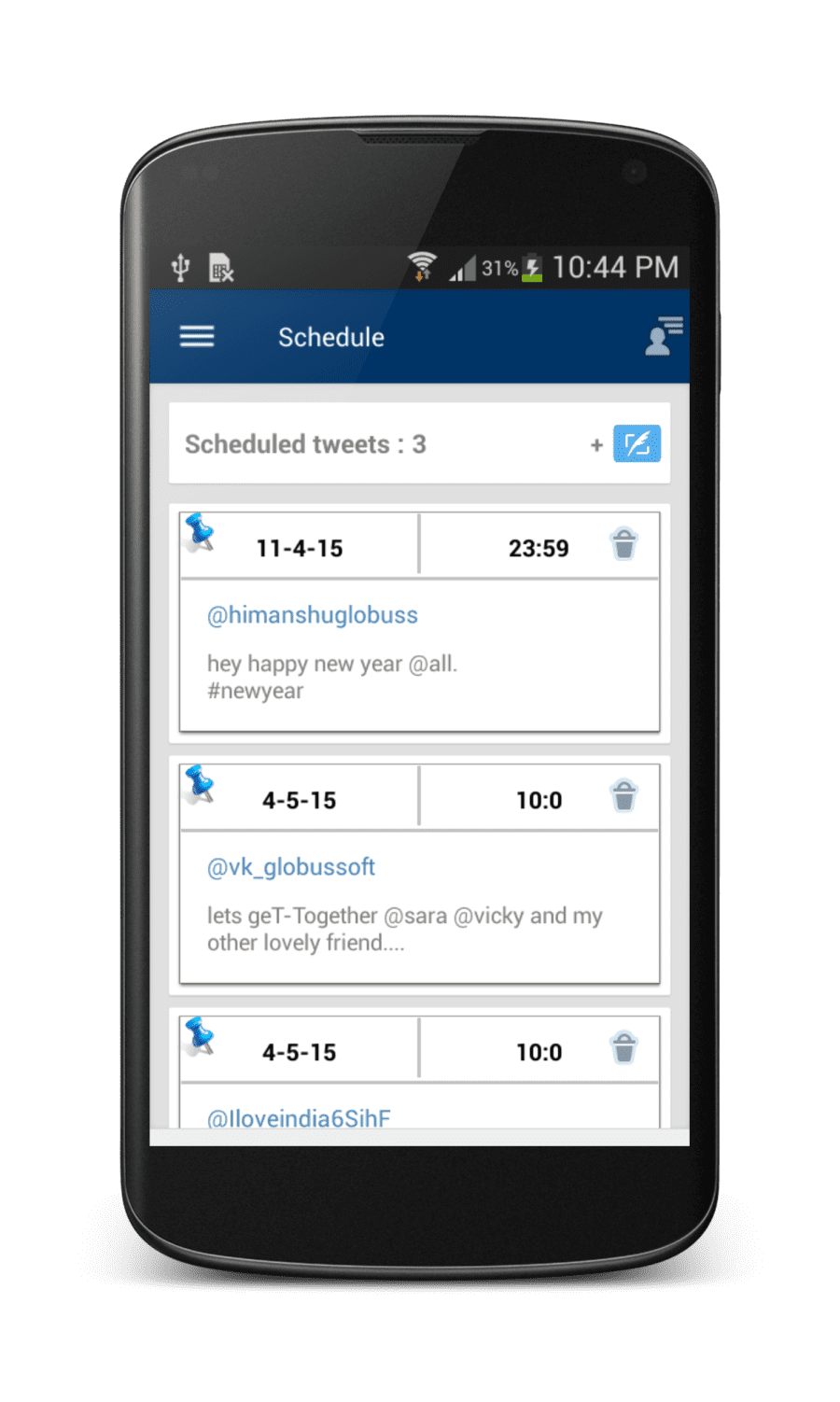 Tweet schedule: You can schedule your message to post on future date.