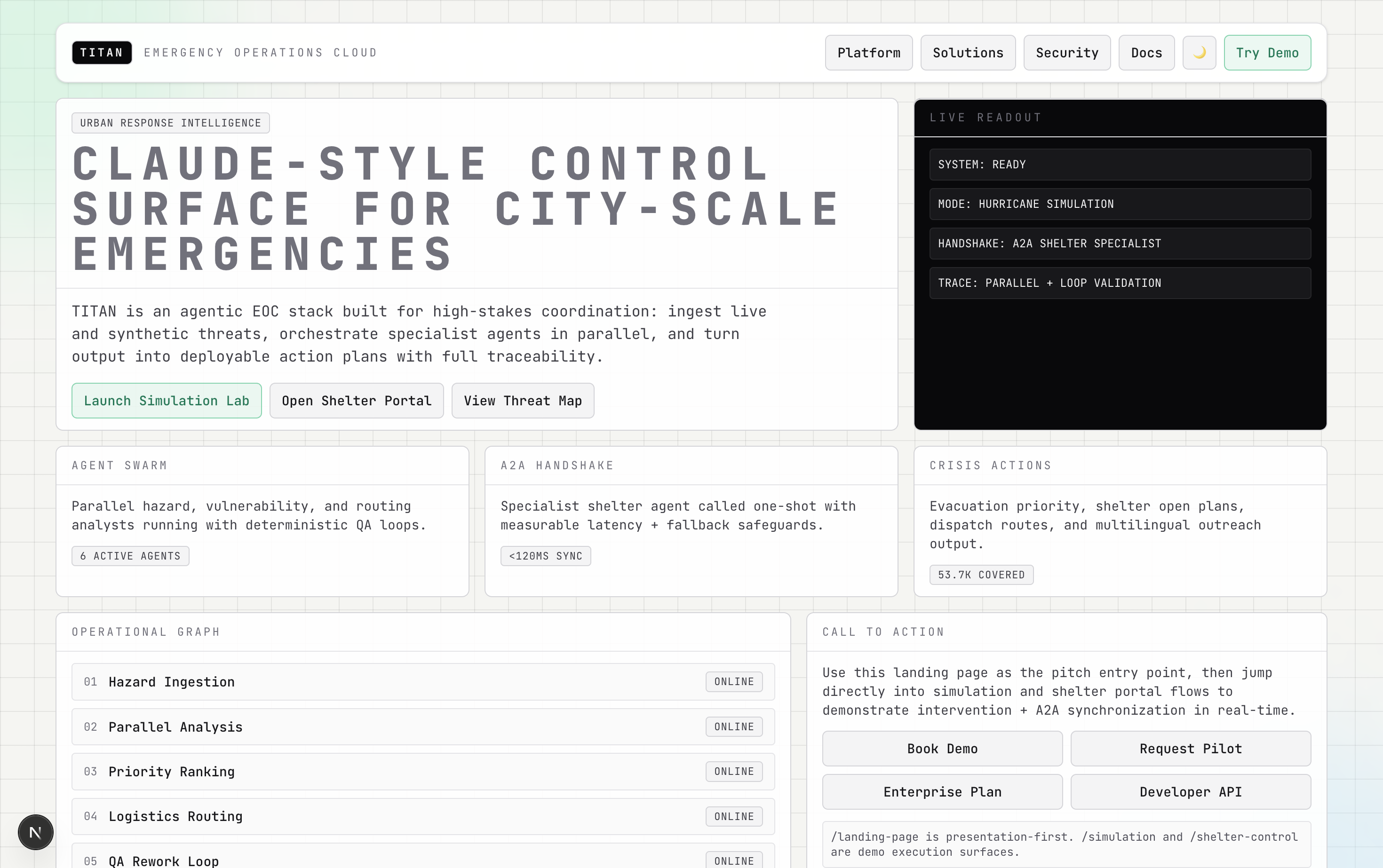 TITAN is a multi-agent crisis operations system built with Google ADK + A2A interoperability.