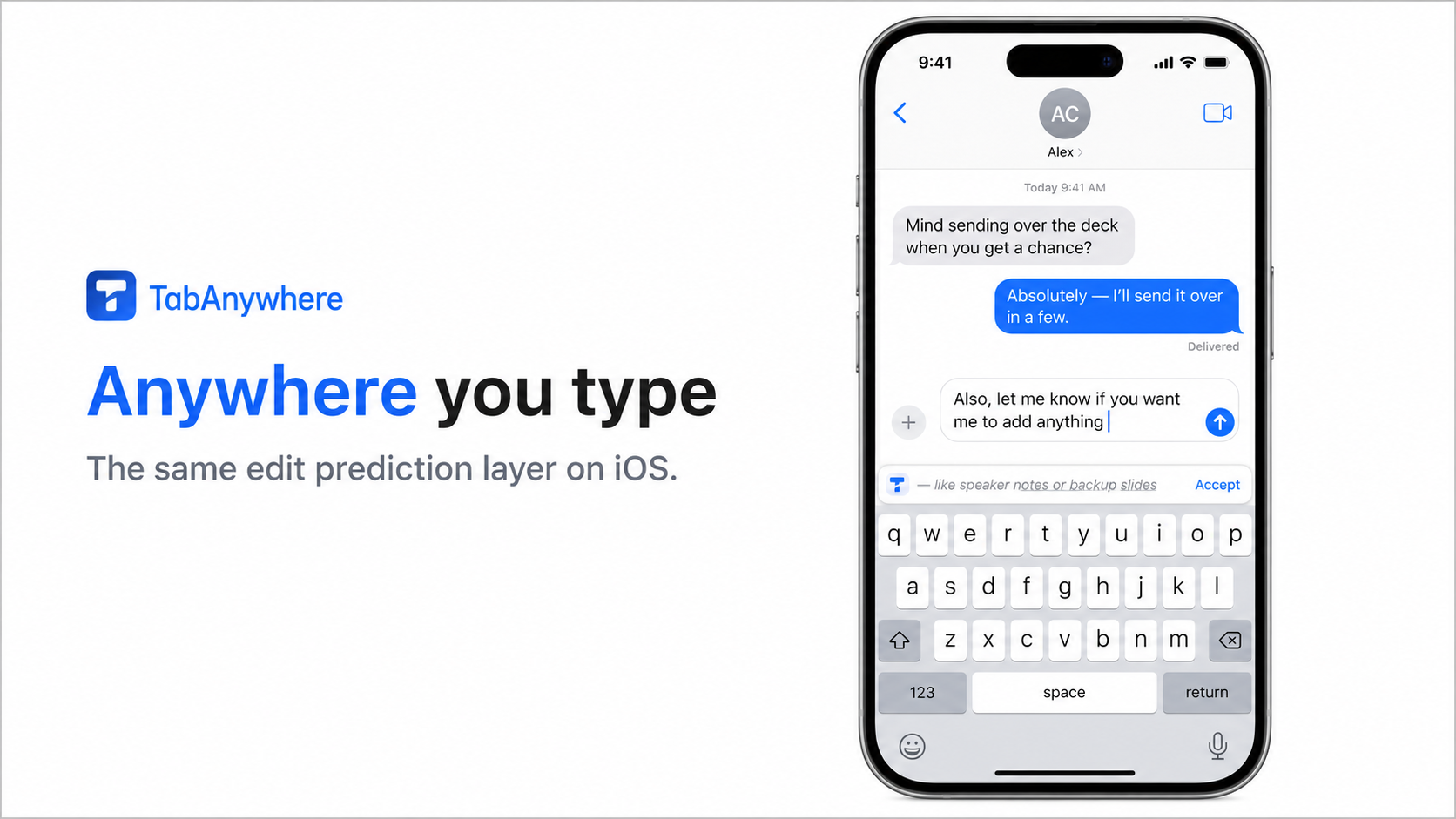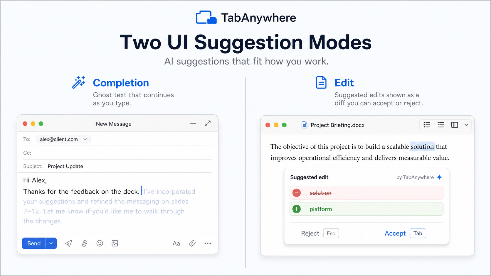 We are proud that Tab Anywhere is not just another chat box. It works where users already type.