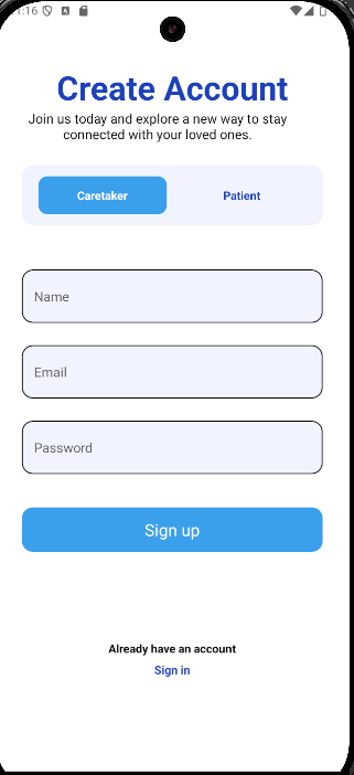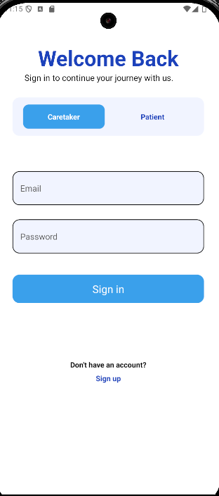 TakeCare is a Smart Care Companion App designed to bridge the distance between caretakers and their loved ones. Key features include: Personalized Voice Alarms: AI-powered reminders in a familiar voice to encourage medicine intake. Real-Time Chat & Alerts: Instant communication and emergency notifications. Location Tracking: Ensures safety through real-time GPS tracking. Prescription Scanner: Uses OCR and AI to interpret prescriptions and generate medication schedules. Health Dashboard: Provides a centralized view of vitals, reminders, and adherence.