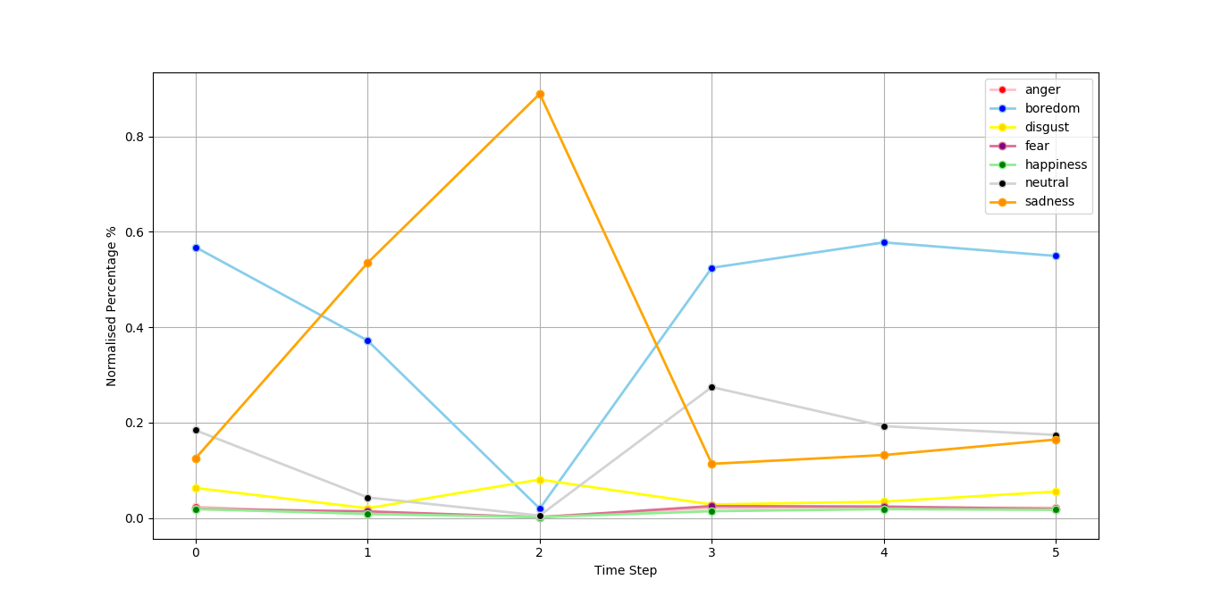 The results from the 2 models are then merged together to generate an overall emotion for the audio file.