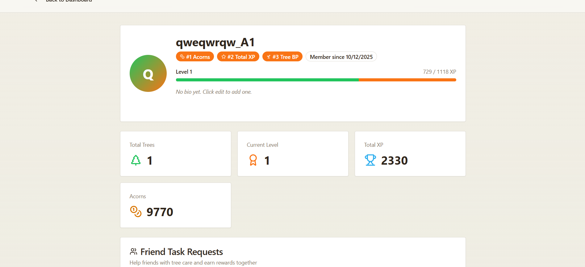 - Friend Collaboration - Built a complete social system including profiles, friend requests, and collaborative quests