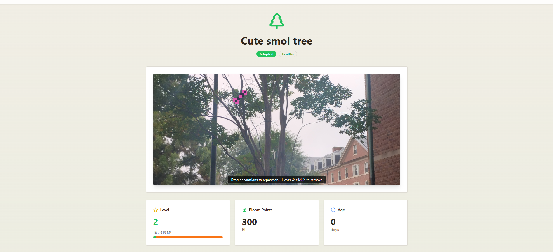 - Personal Tree Care - Only adopted trees can be decorated and earn rewards
