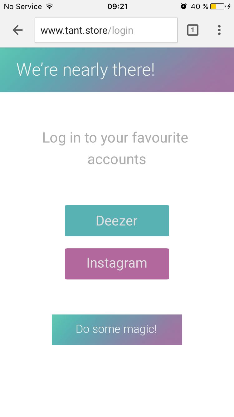 Tant suggests tailored clothing offers to its users by analysing their presence in Deezer and Instagram. The app is integrated with Zalando’s Shop API to facilitate the purchase of the desired clothes. The onboarding to the app is very simple since it consists of a 3-field form (gender, age and country) and the login to either the user’s Instagram and/or Deezer account. When the user is ready to run Tant, our algorithm calls Zalando’s Shop API to scrape all the brands in stock, then analyses the shopper’s presence on the previously mentioned platforms and returns the most suitable pieces of apparel.