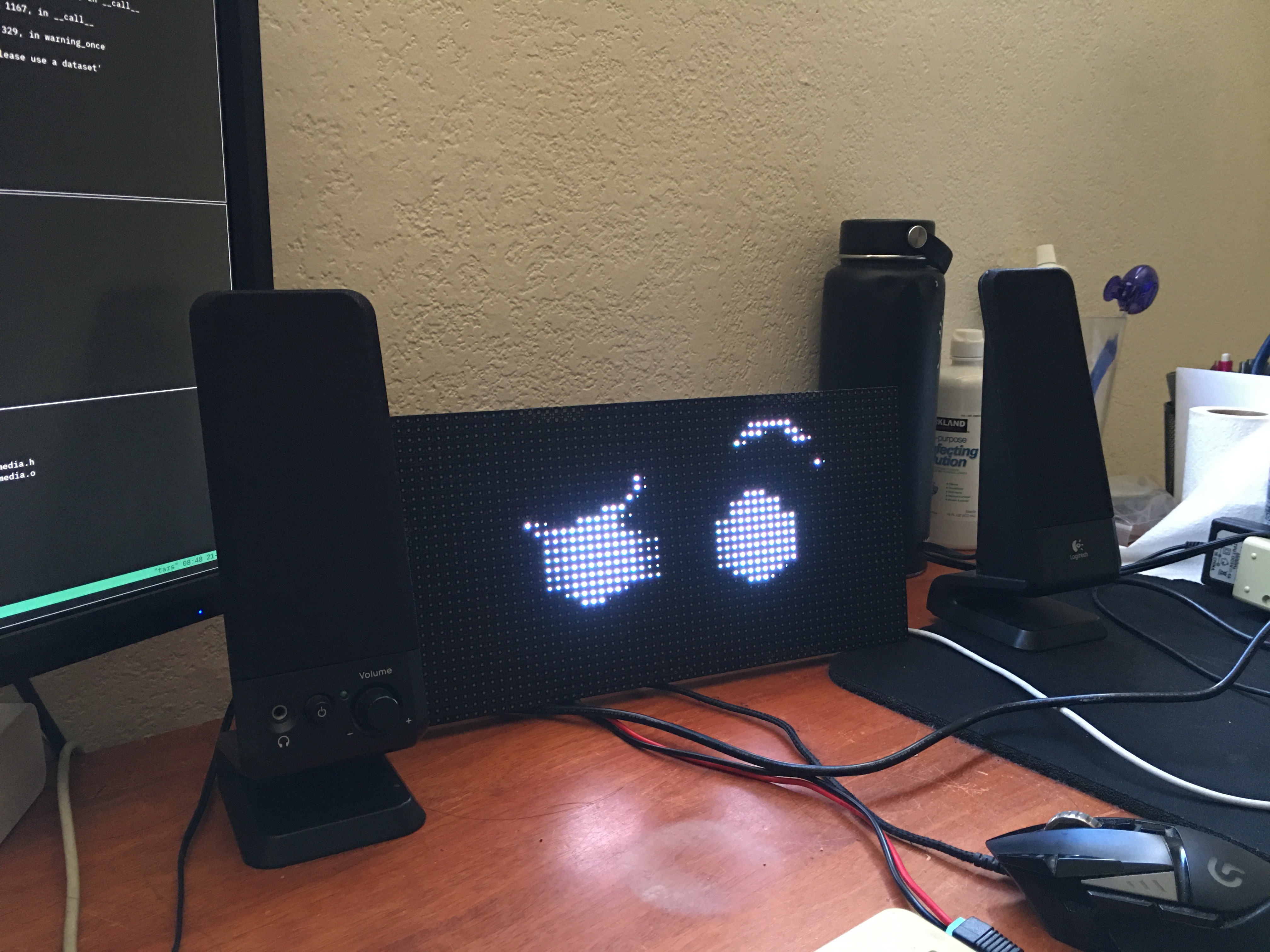 An LED matrix and a raspberry pi which gave us the initial idea to make an animated assistant. With the help of open source drivers to control the matrix, we wrote C++ scripts to display animations. Next, we set up speech-to-text using whisper.cpp and ran it on a separate desktop computer to make Tars more responsive. The transcription was then fed into a locally-run instance of LLaMa 3 while maintaining the full context of the conversation. We tested many prompts in order to find one that would most effectively communicate like a therapist and provide the emotional context to each response. We sent the text to Piper to be vocalized and forwarded the emotions over HTTP to the Pi for it to display an appropriate facial expression on the LED matrix. The facial expressions were animated frame by frame and the Pi switches between them with custom C++ logic.