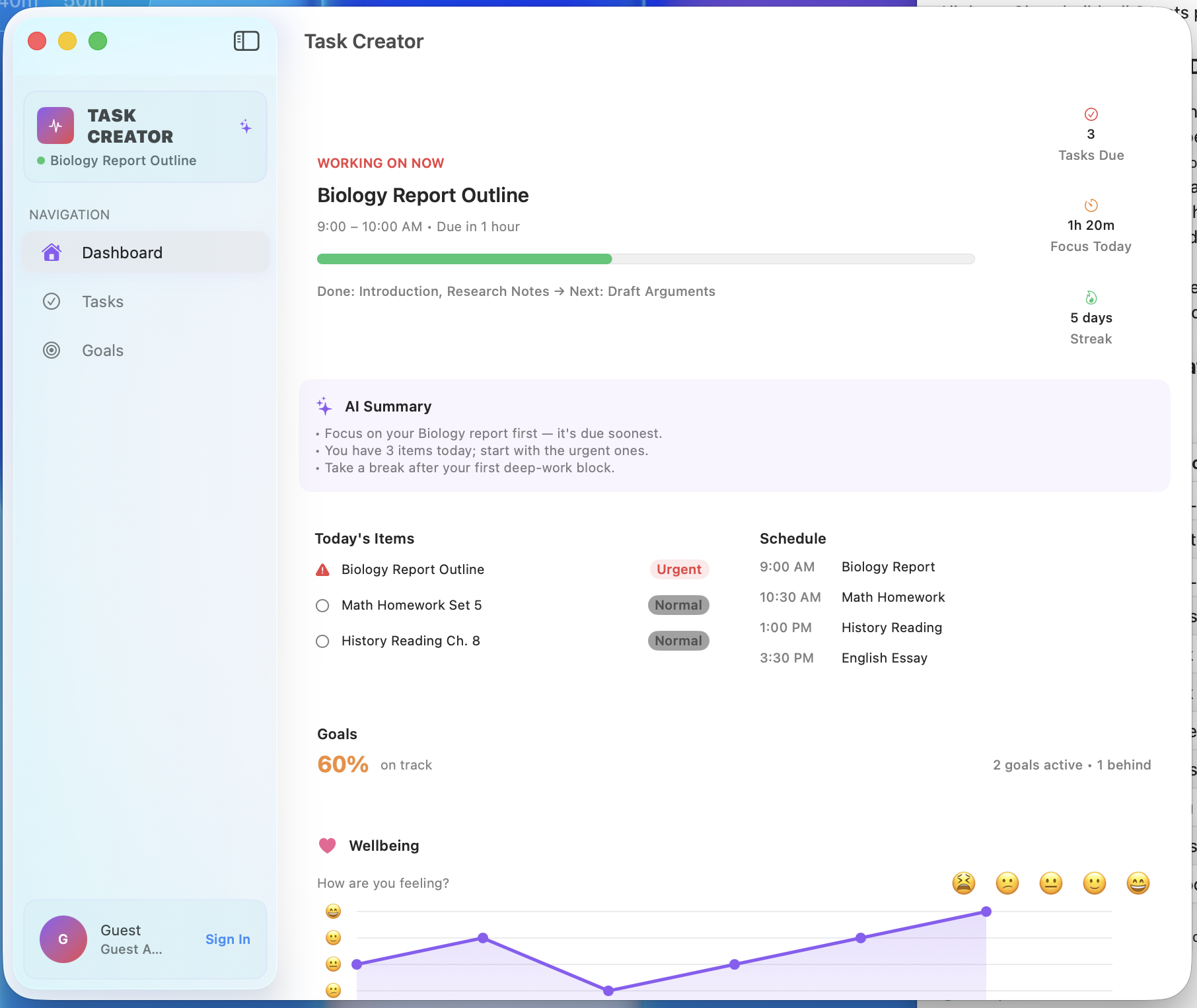 I used SwiftUI in Xcode to build my app. For the Ai model i used the huggingface api. First I made the basic todo list and schedule app that can add tasks. Then I integrated the Ai so it can acces all the data and give suggestions.