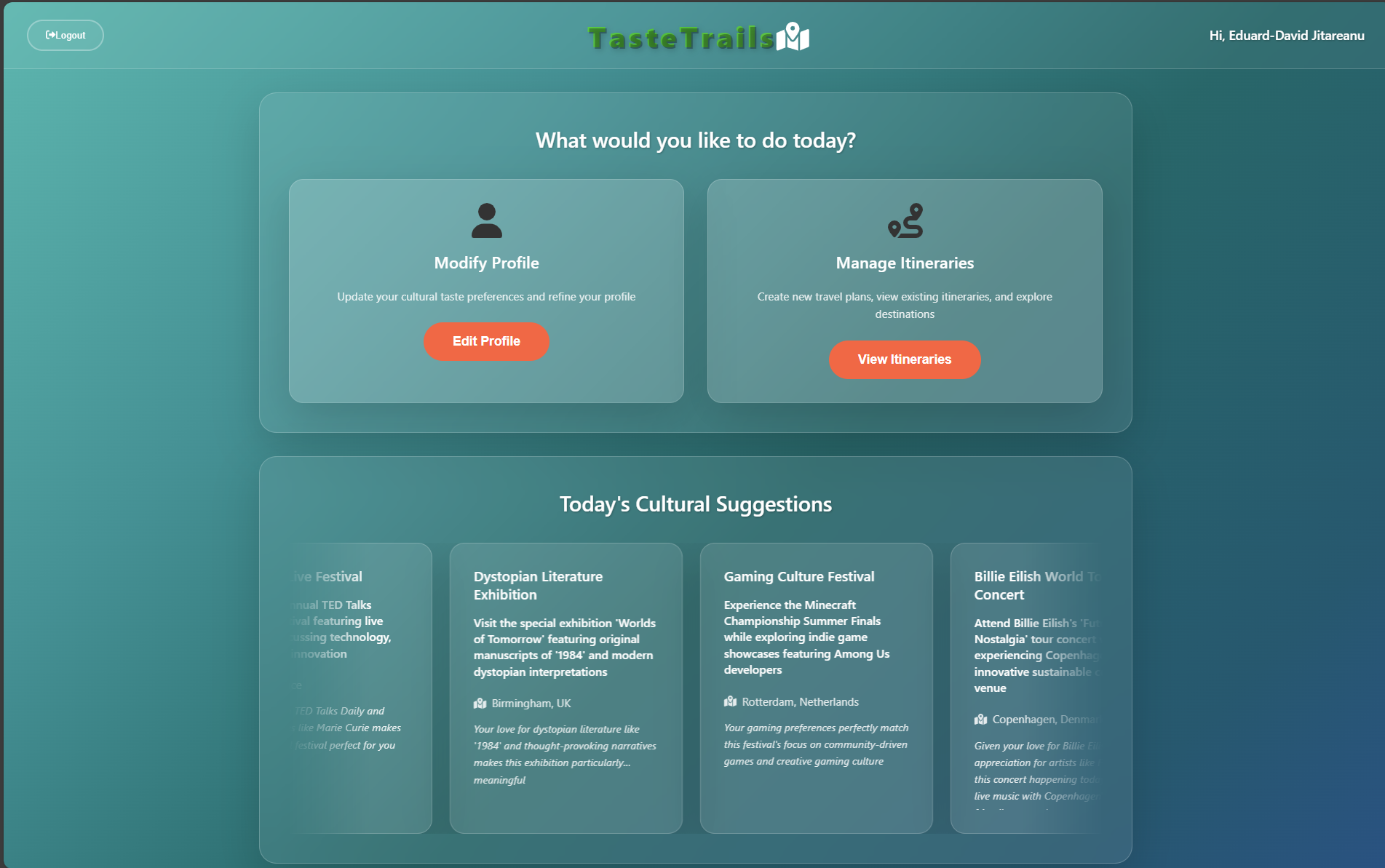 - Social features: Share itineraries and discover friends with similar cultural DNA or share an itinerary and contribute to activities together