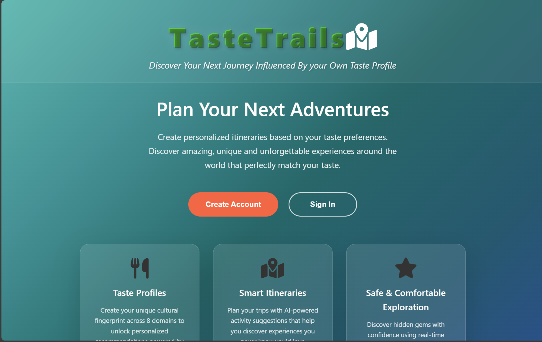 TasteTrails was born from a frustration I've experienced countless times: "Should I even visit this city? Nothing there seems to fit my taste." Too often, I found myself disappointed by destinations because I was seeing them through generic tourist recommendations, missing all the hidden gems that would actually resonate with who I am as a person.