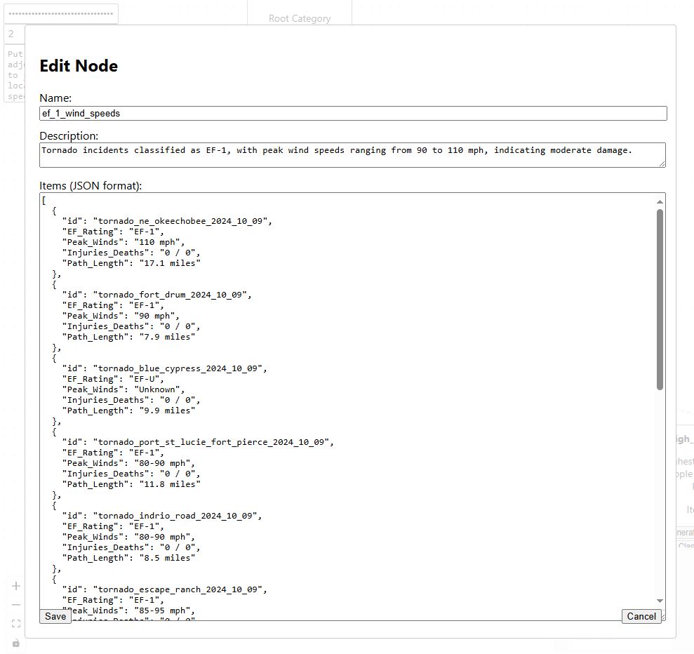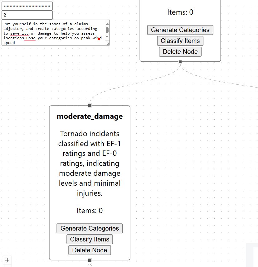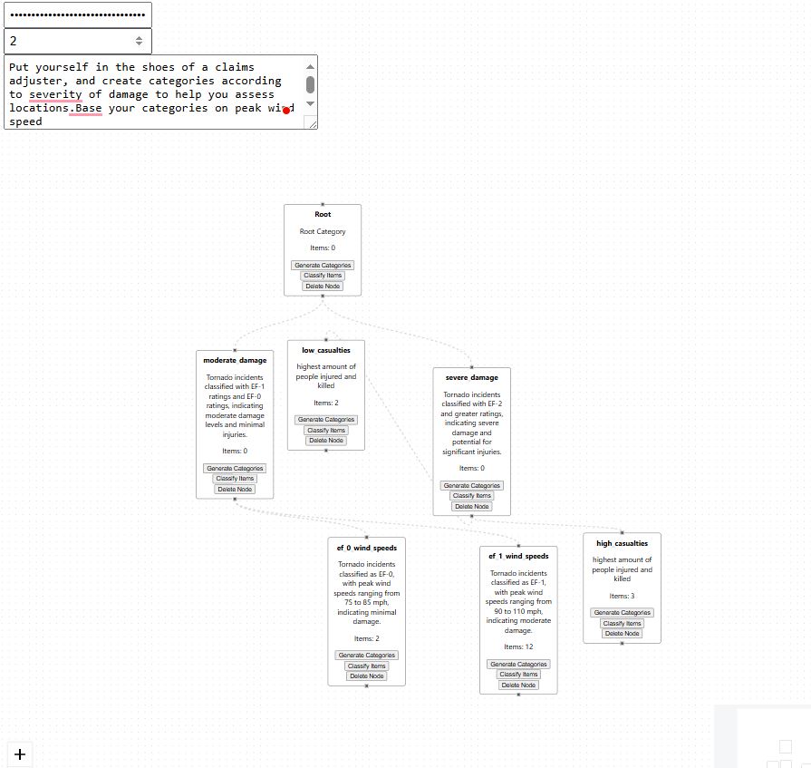 Relief AI is an AI-driven taxonomy generator that transforms unstructured data from disaster claims into a structured, hierarchical format. It allows insurance adjusters to: