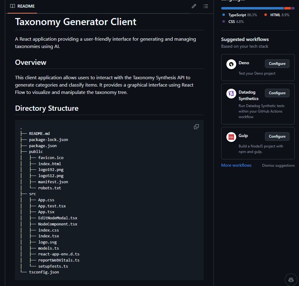 taxonomy-synthesispackage to generate taxonomies and classify items. It provides endpoints for:
