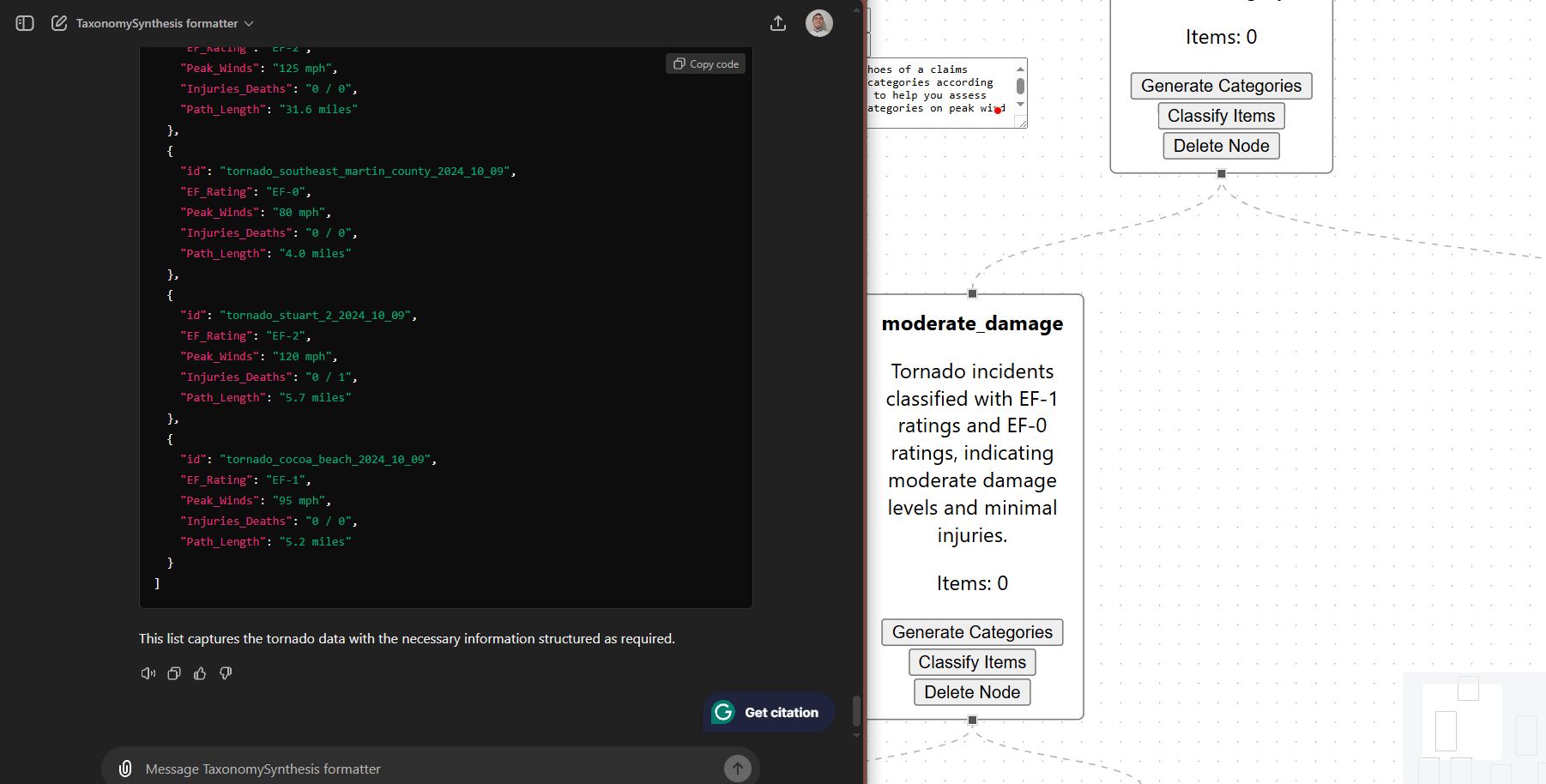 AI Integration: Successfully integrating OpenAI's GPT models to generate meaningful taxonomies and classifications relevant to disaster claims.