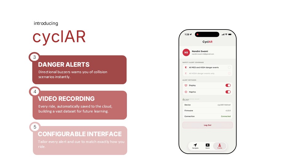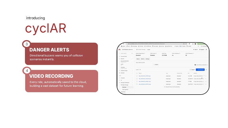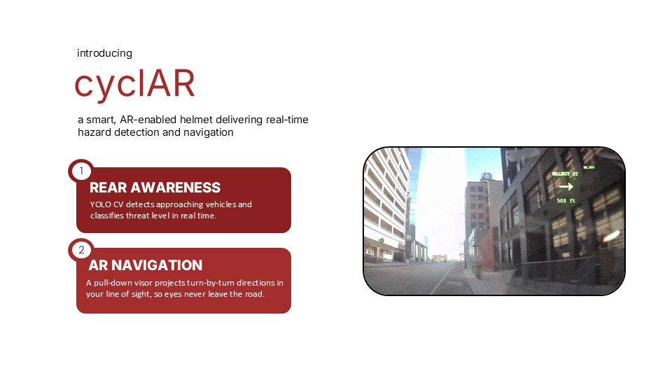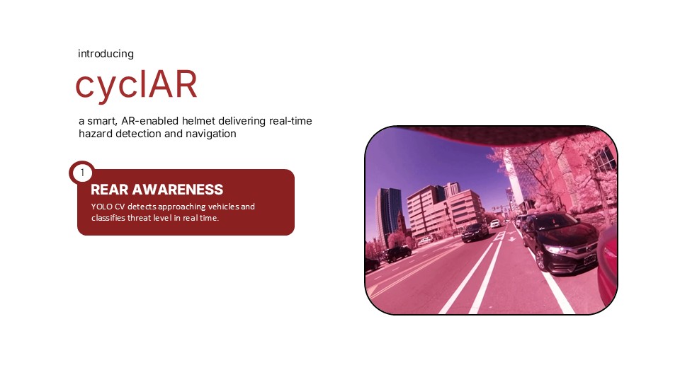 Inspiration Summer biking experiences in major US cities including NYC What it does How we built it Challenges we ran into What we learned What's next for Team 01 - CyclAR TBD Built With none