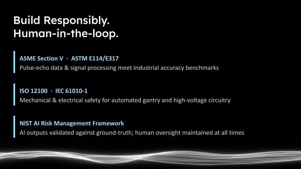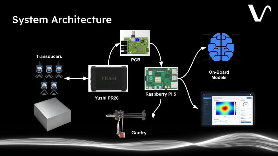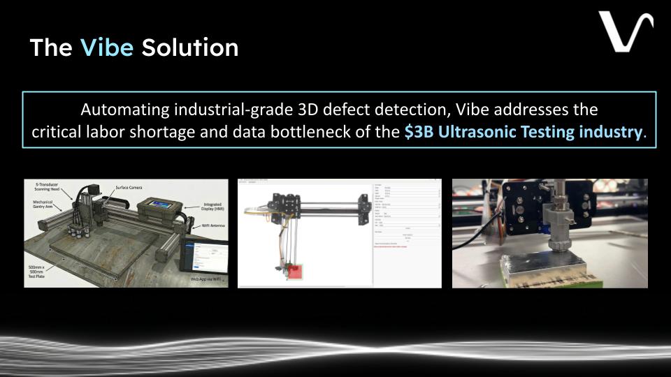 Team Invisible Problem Who We Solve For Non Destructive Testing Inspection Gap Data Bottleneck Vibe Solution System Architecture Control PCB Material Sampling Ultrasound Ground-truth Dataset Defect Predictions Responible AI Thank You Vibe Built With ultrasound