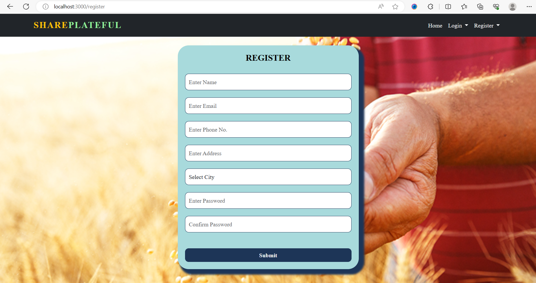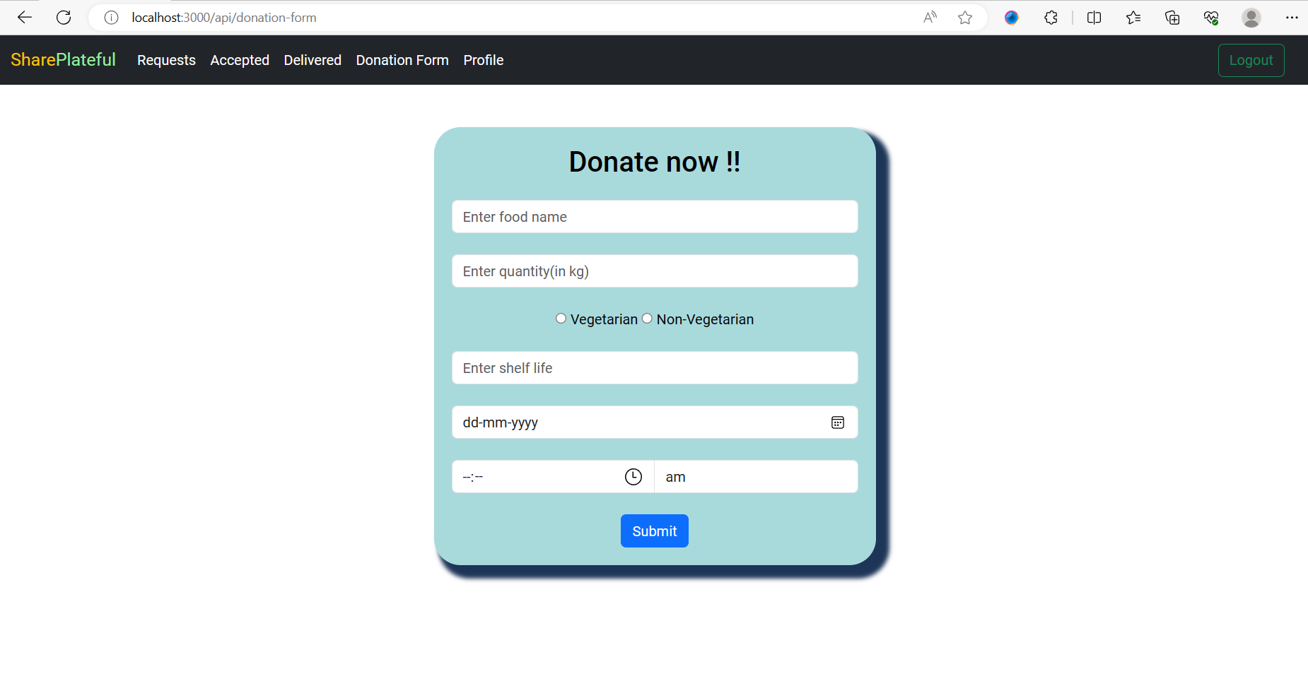 Donation Form-To fill in the food details Donor want to donate.