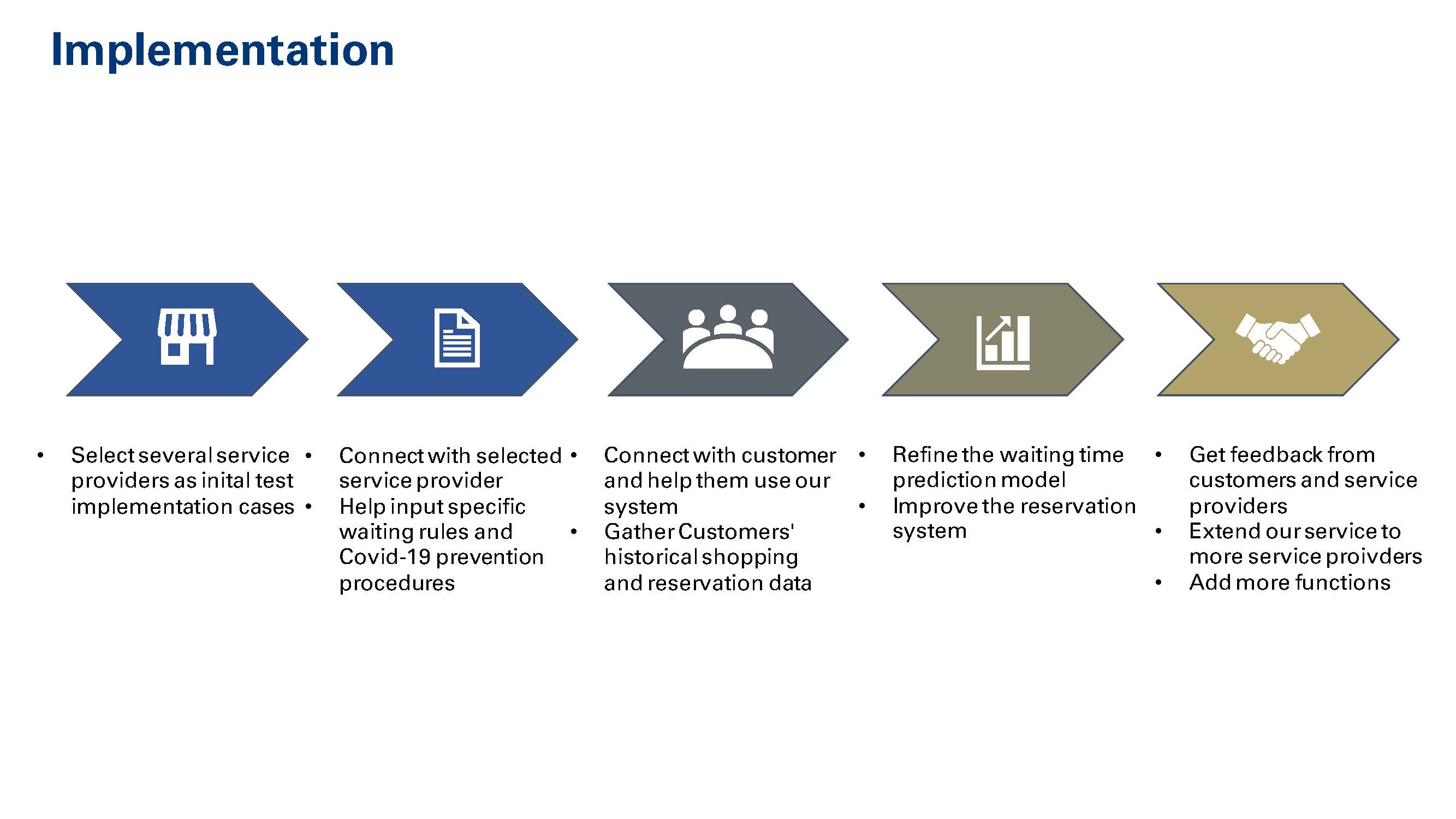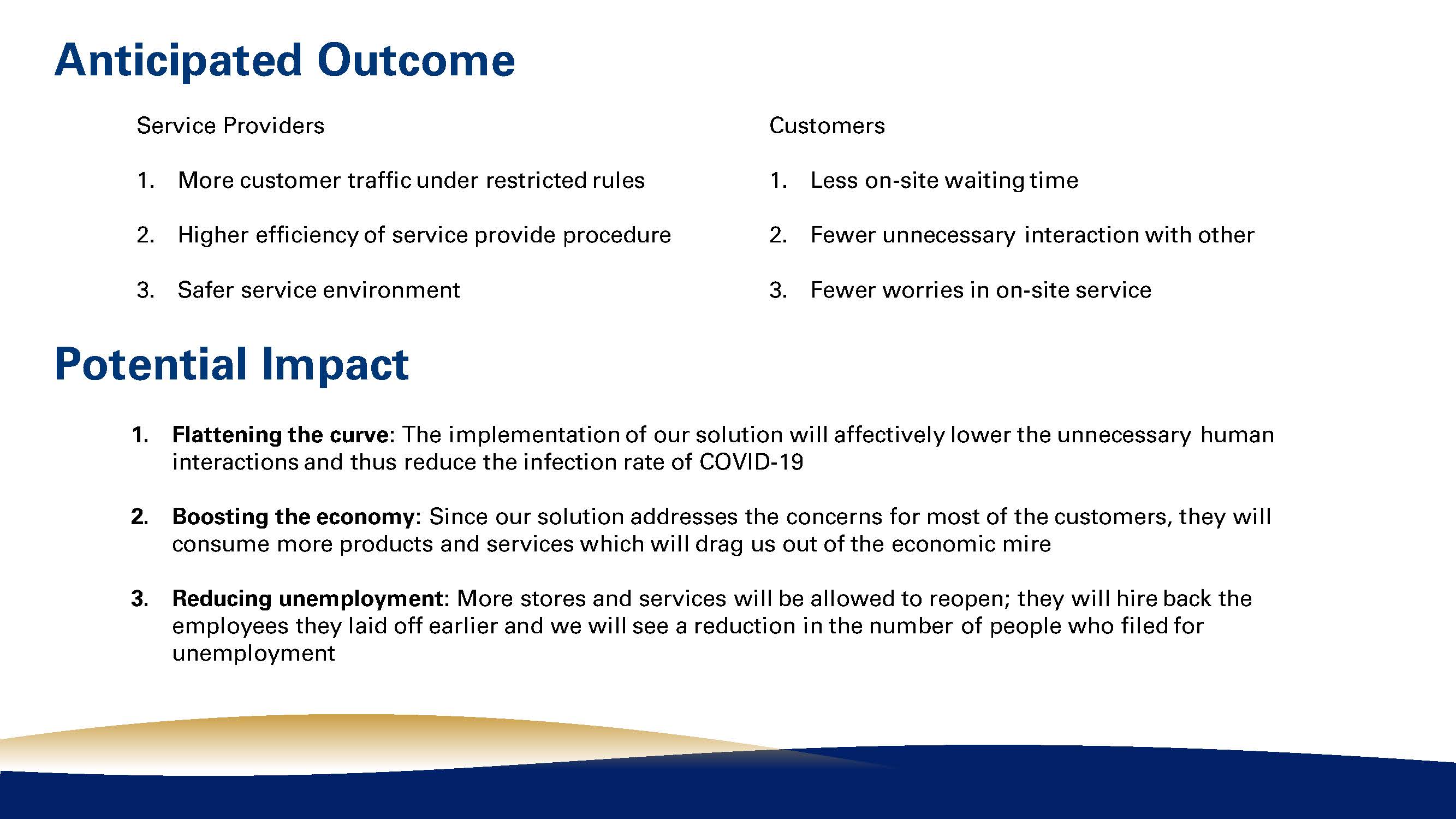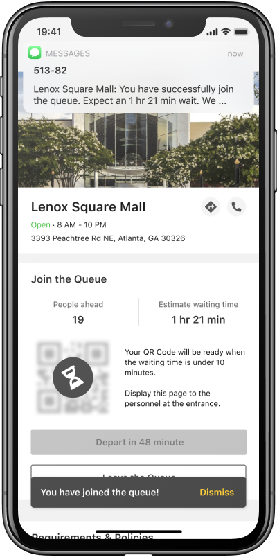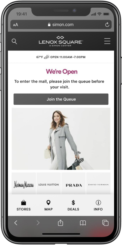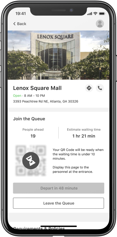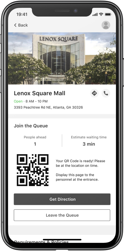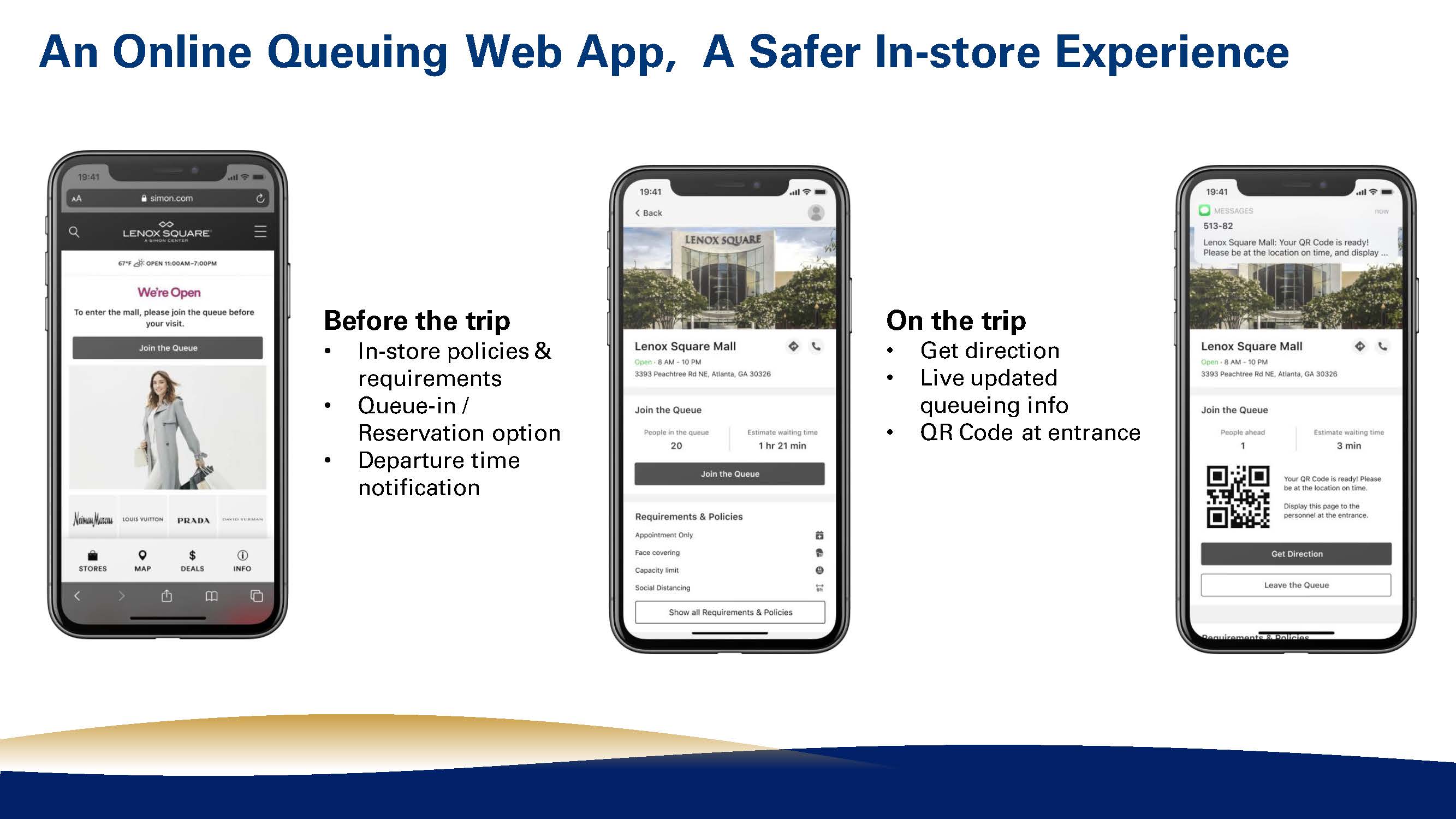 To help maintain social distancing and control customer traffic flow after reopening, we designed an online queuing system that can be used in shopping malls, restaurants, and public service centers. With this system, service providers would monitor and control the customer traffic in real-time, and customers would shorten their waiting time and enjoy safer on-site service under restrictive safety policy.