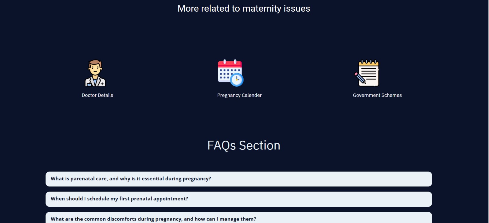 MaternaSage aims to revolutionize maternal healthcare by offering a comprehensive suite of solutions: Virtual Maternity Hub: A central platform where pregnant women can access a wealth of information, services, and support, catering to all aspects of their maternal journey. Expert Guidance: Connect women with experienced doctors and specialists for virtual consultations, offering them expert advice regardless of their location. Personalized Care Plans: Tailor care plans to each woman's unique health needs, ensuring that they receive guidance aligned with their individual circumstances. Health Information: Provide comprehensive and reliable information about pregnancy, maternal care, nutrition, exercises, and common queries.